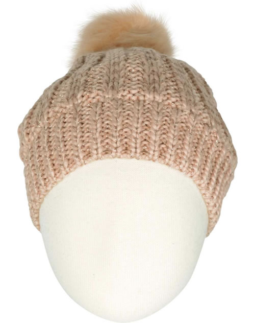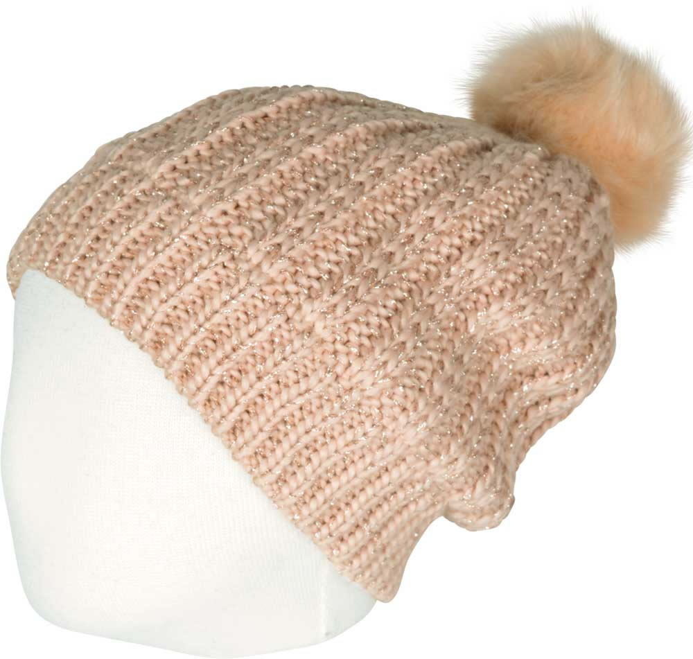 Beautiful pommel hat in pink with glitter yarn and fake Fur-Bommel by NAME IT for girls. The coarse knit look and the great shape make it an absolute eye-catcher. From the inside the cap is lined with soft fleece. It is an absolute must-have for the winter!