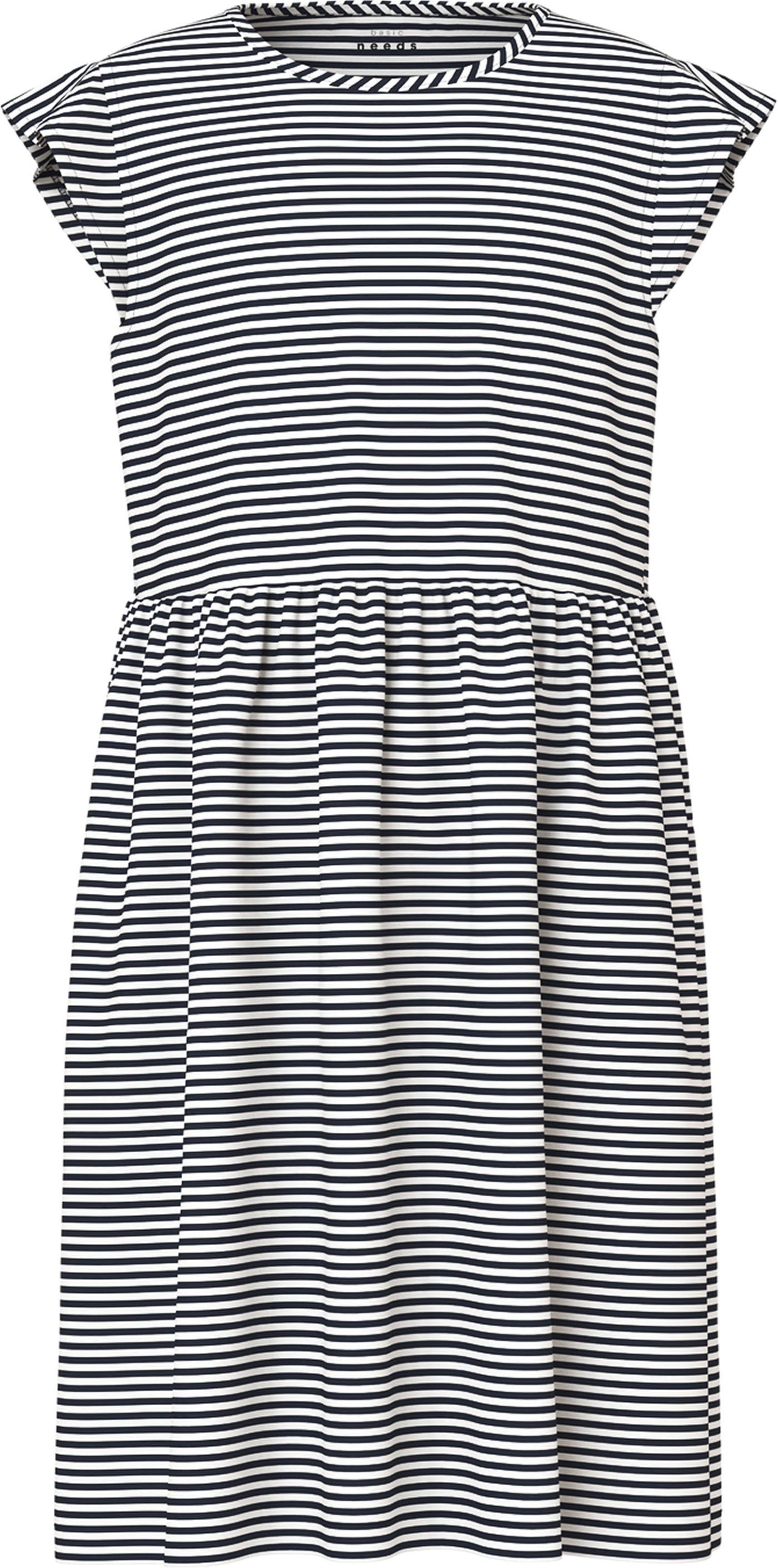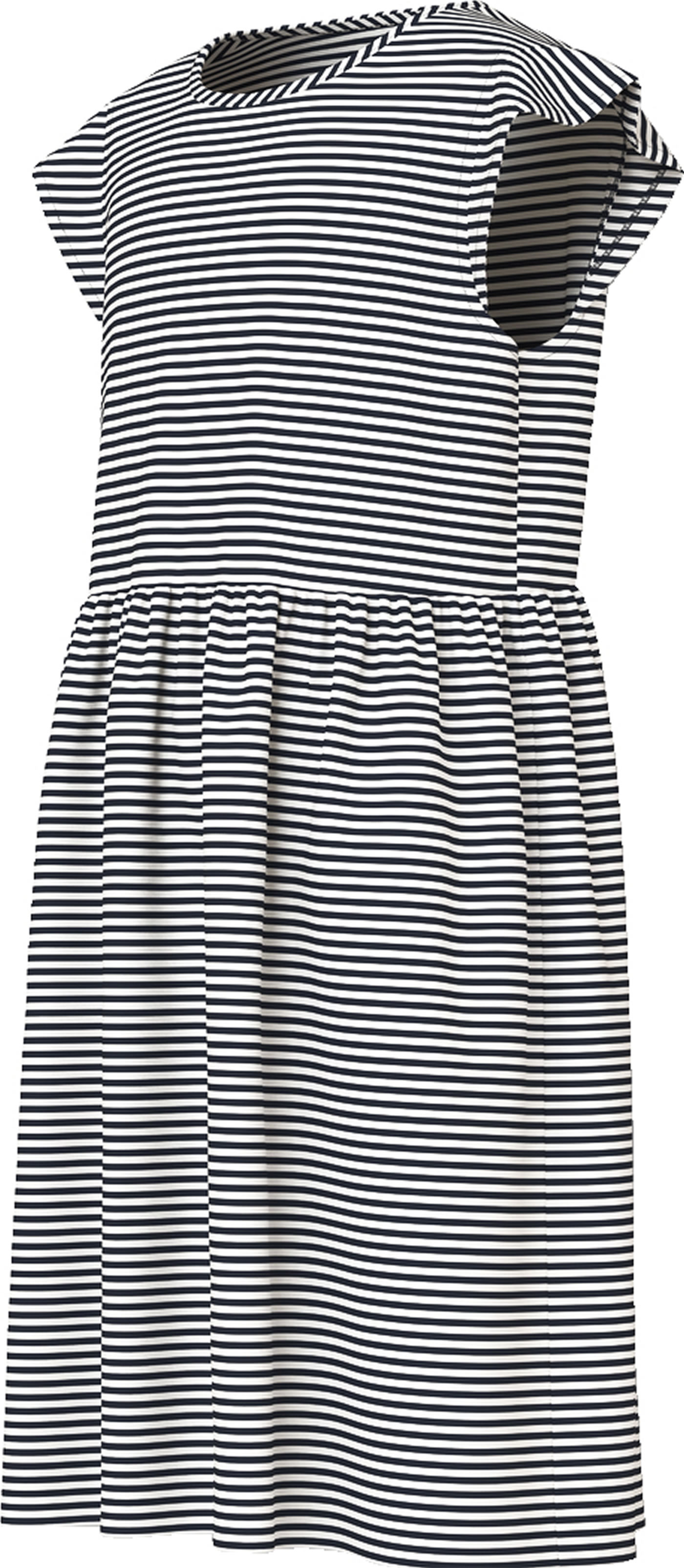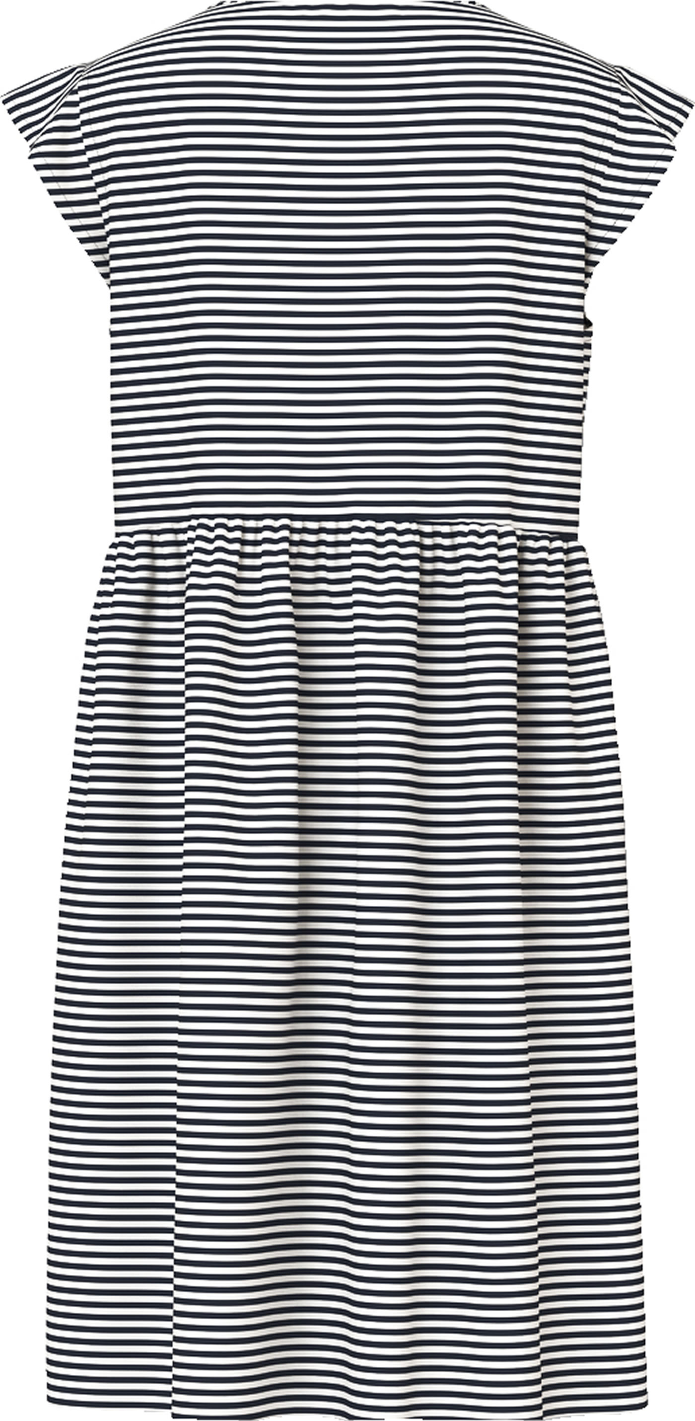 Pretty dress made of light jersey fabric from NAME IT. The striped pattern quickly makes this dress a favorite. The dress can be easily combined with leggings or tights.