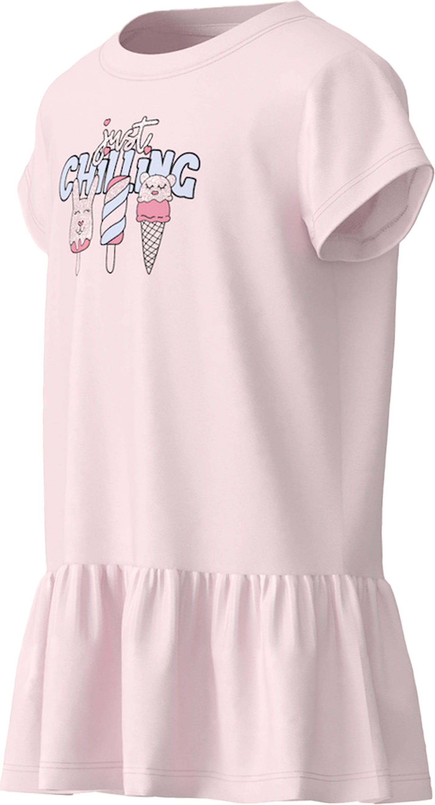 Summery tunic dress in the color parfait pink from NAME IT for girls. The loose cut offers plenty of freedom of movement. It can be worn alone or can also be easily combined with leggings. Nice details include the glitter print on the front. The pleasant material offers a high level of comfort.