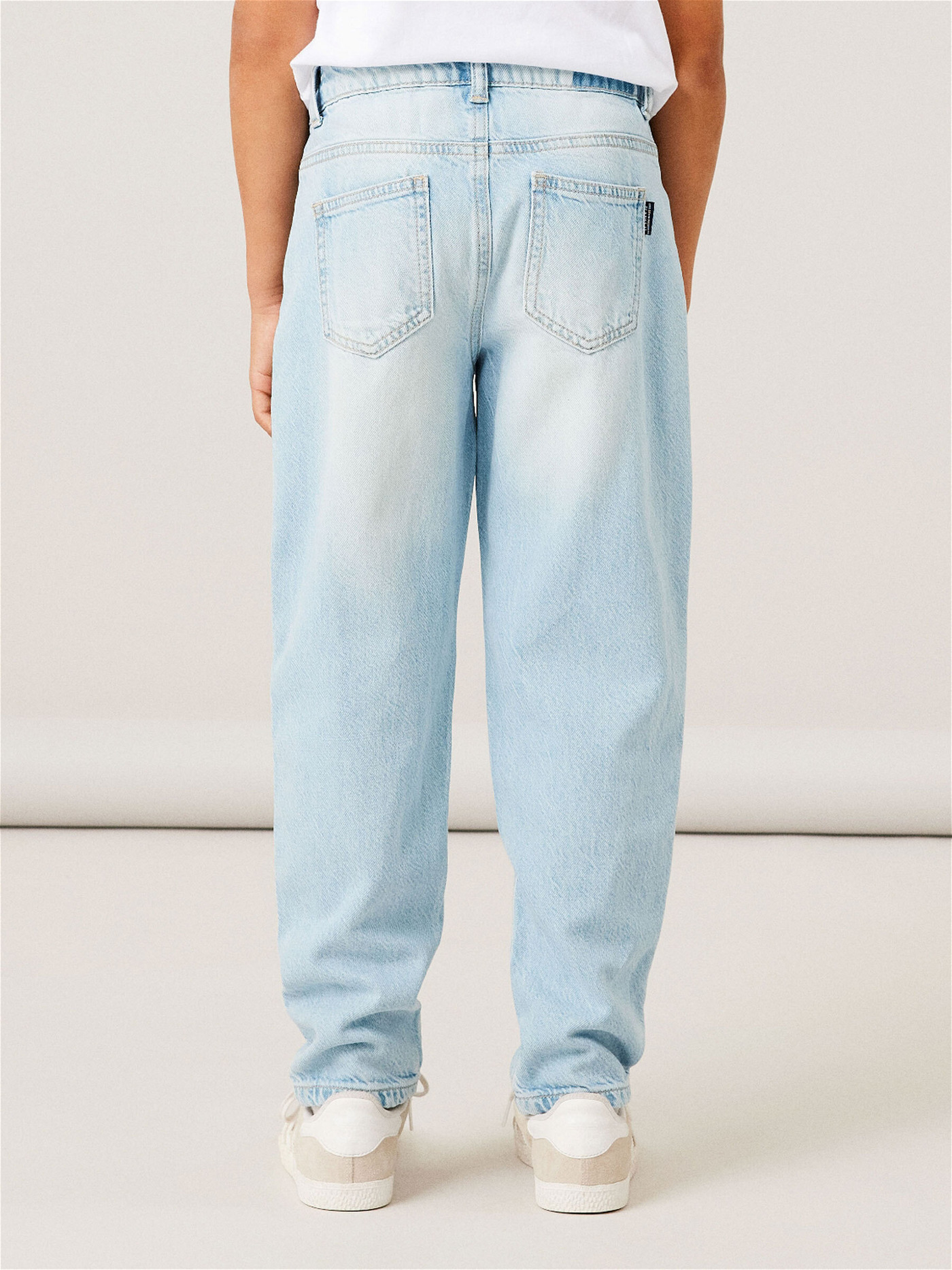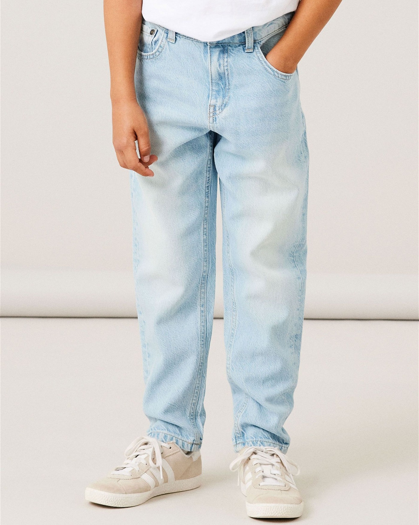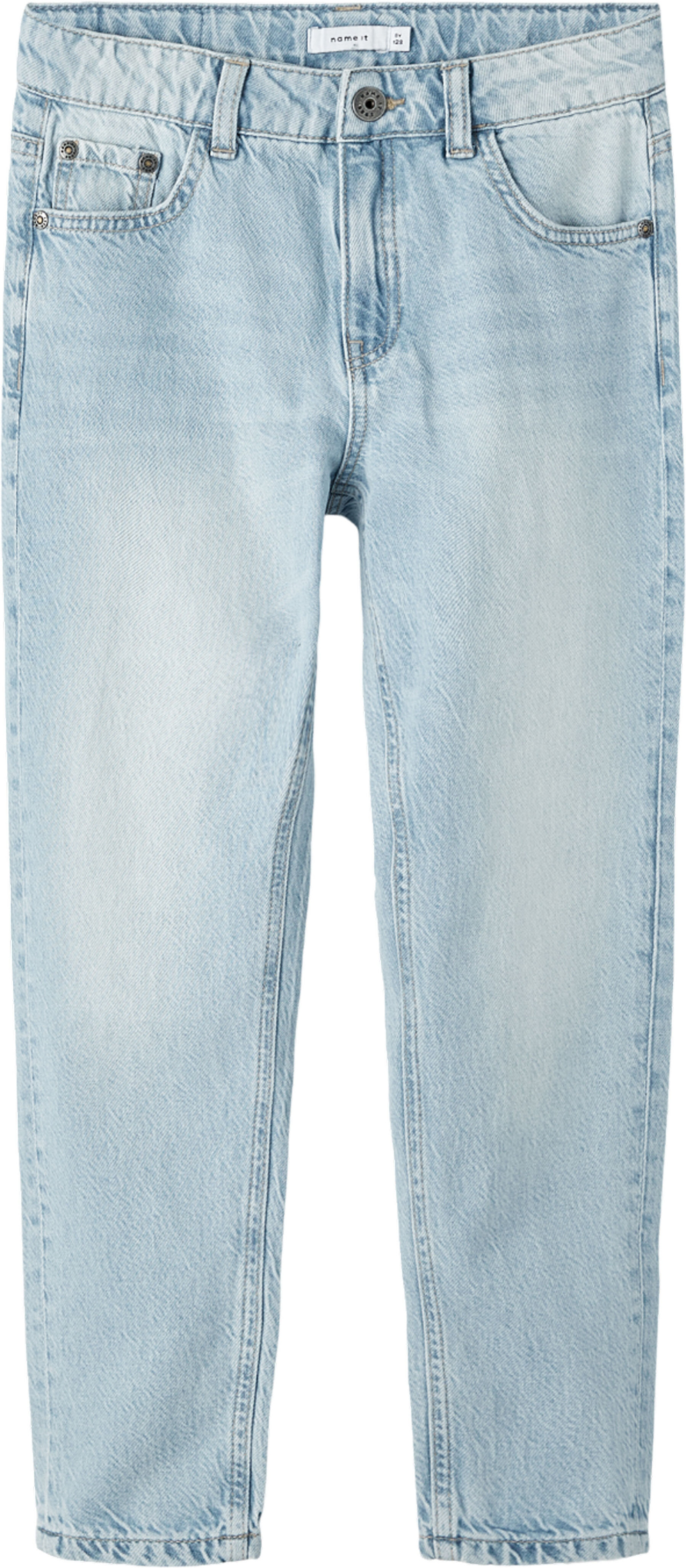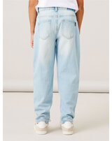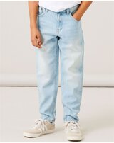 Great jeans trousers in light blue denim for boys from NAME IT. These trousers make every outfit an eye-catcher. There are two pockets on the front and back. Details such as the washes and pleats make these trousers a favorite piece that can be combined wonderfully. The trousers can be adjusted in width with an elastic waistband with buttons on the inside of the waistband.