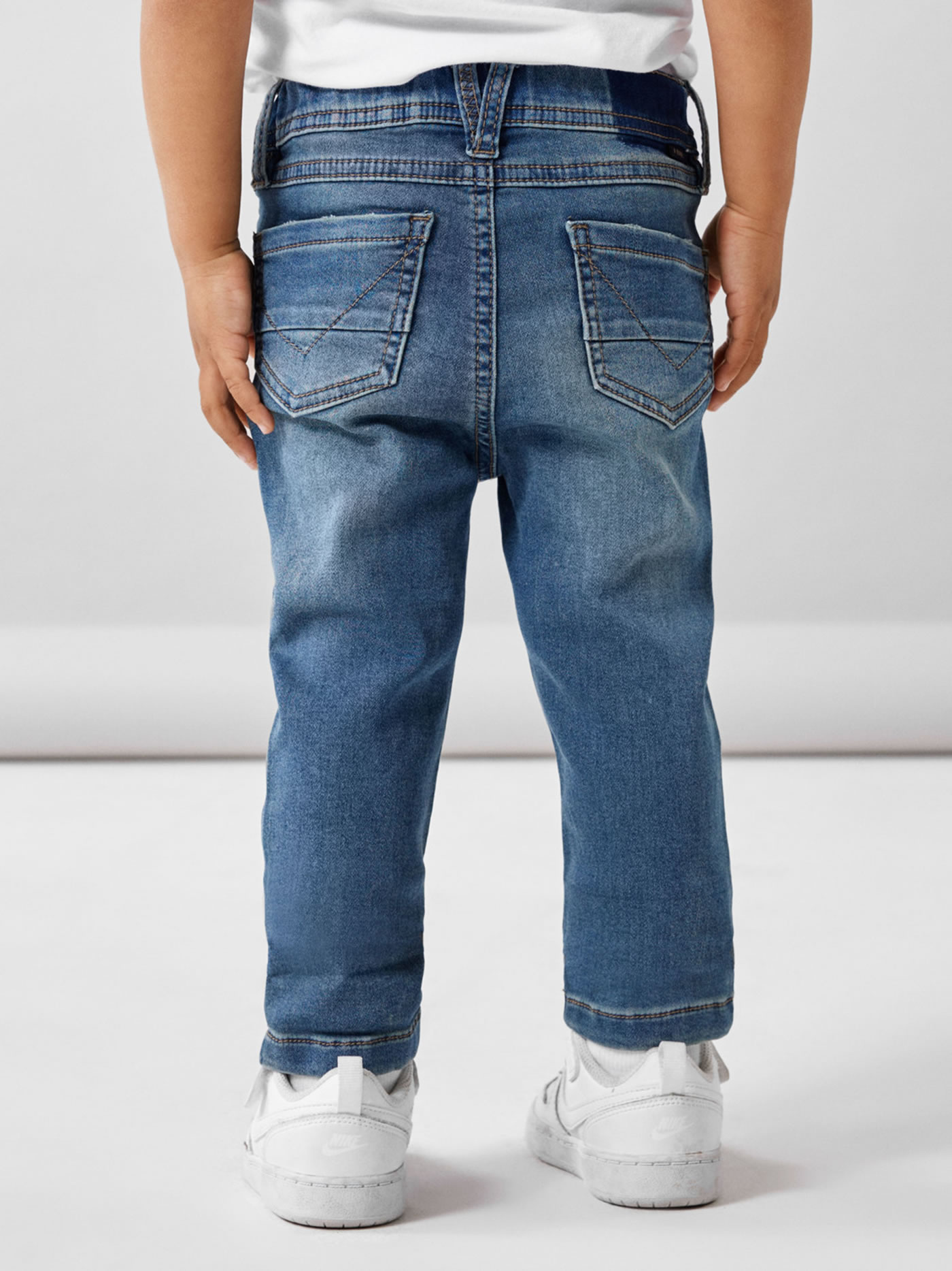 Great stretch jeans for boys from NAME IT. The trousers have a narrow cut. The jeans are super stretchy thanks to the elastane content. A great eye-catcher here are the washes. An inside adjustable waistband offers an optimal fit.
