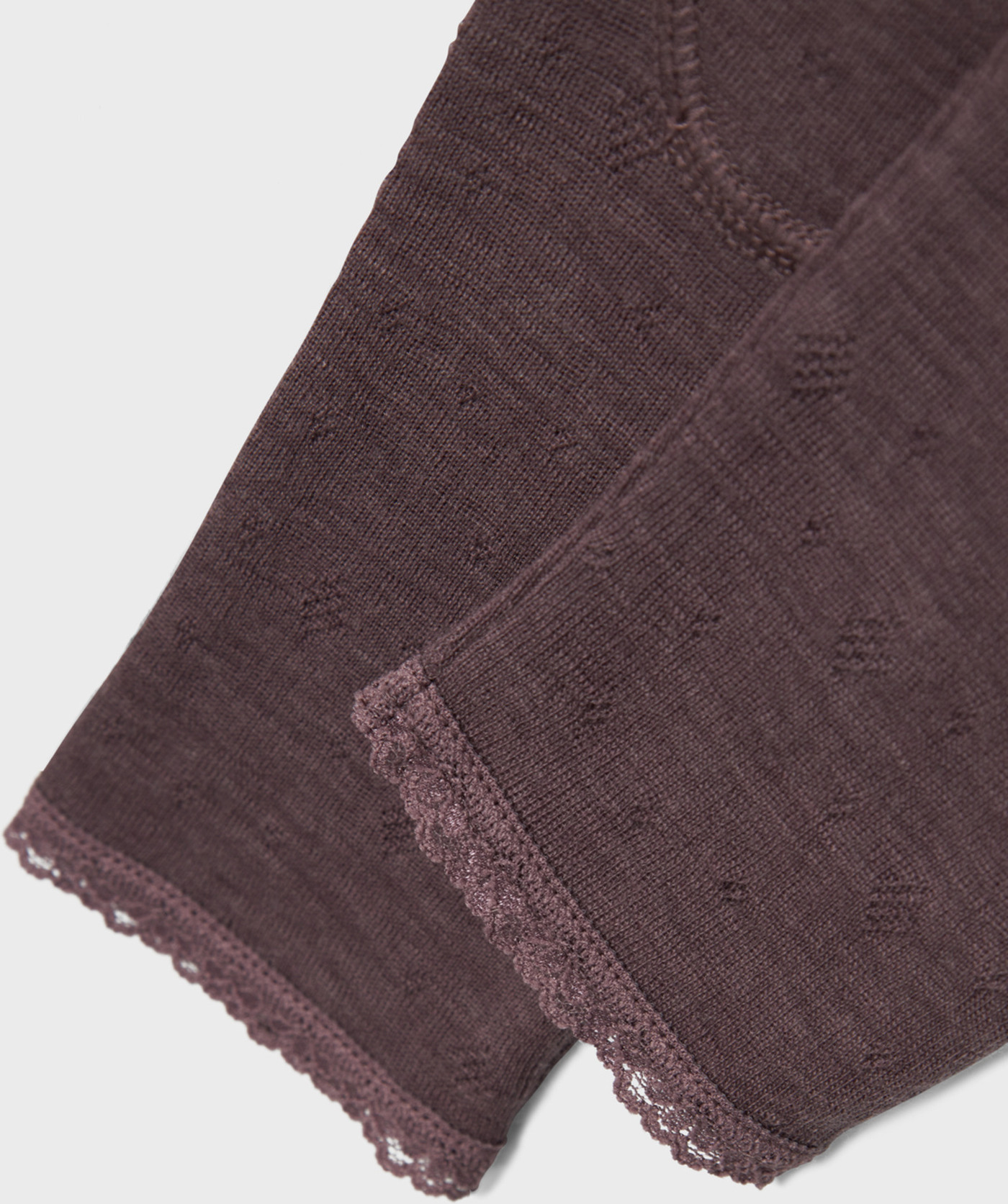 Leggings by NAME IT for girls. The leggings have a soft elastic waistband that ensures a comfortable fit. A special detail is the openwork pattern and the cute leg ends.