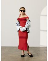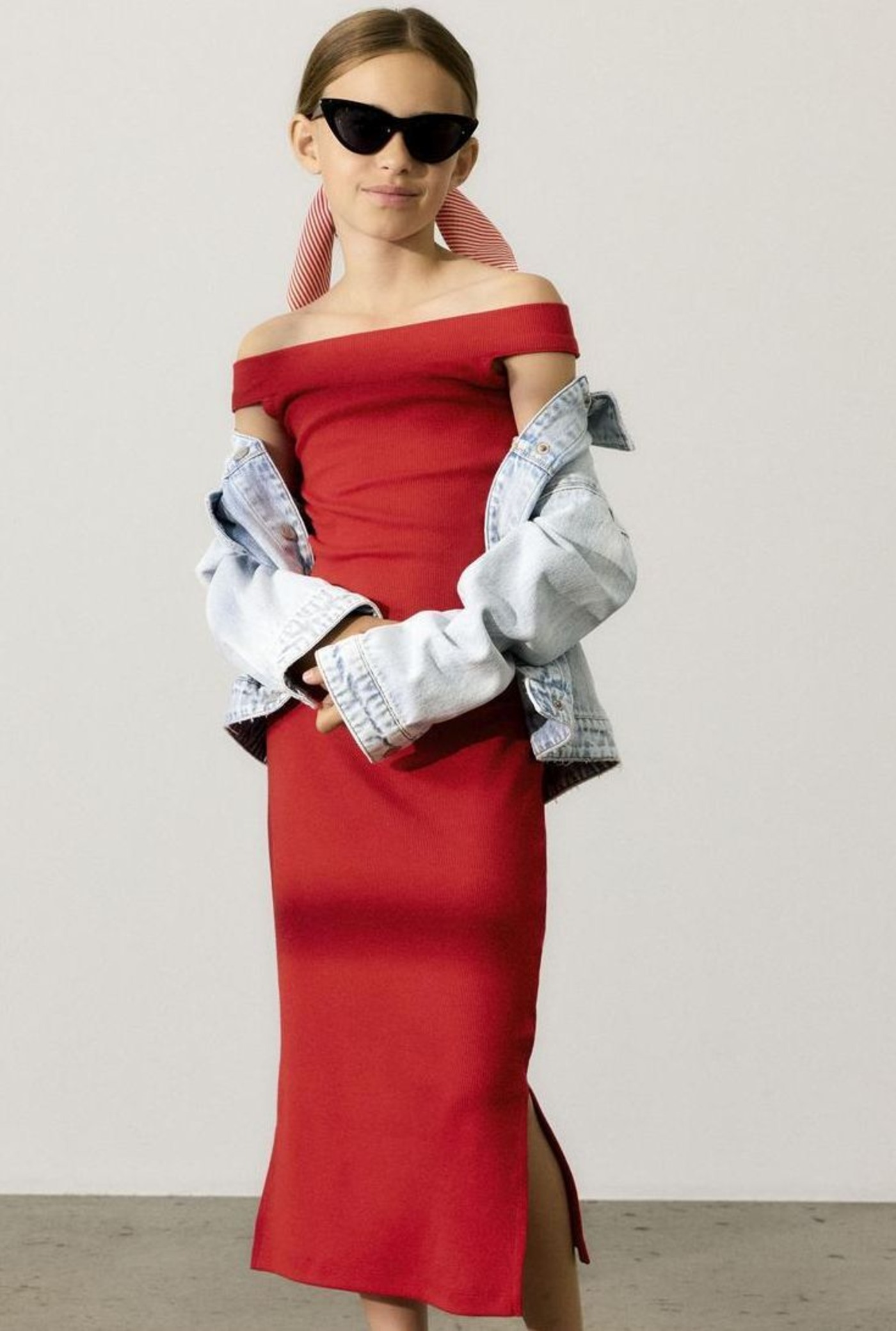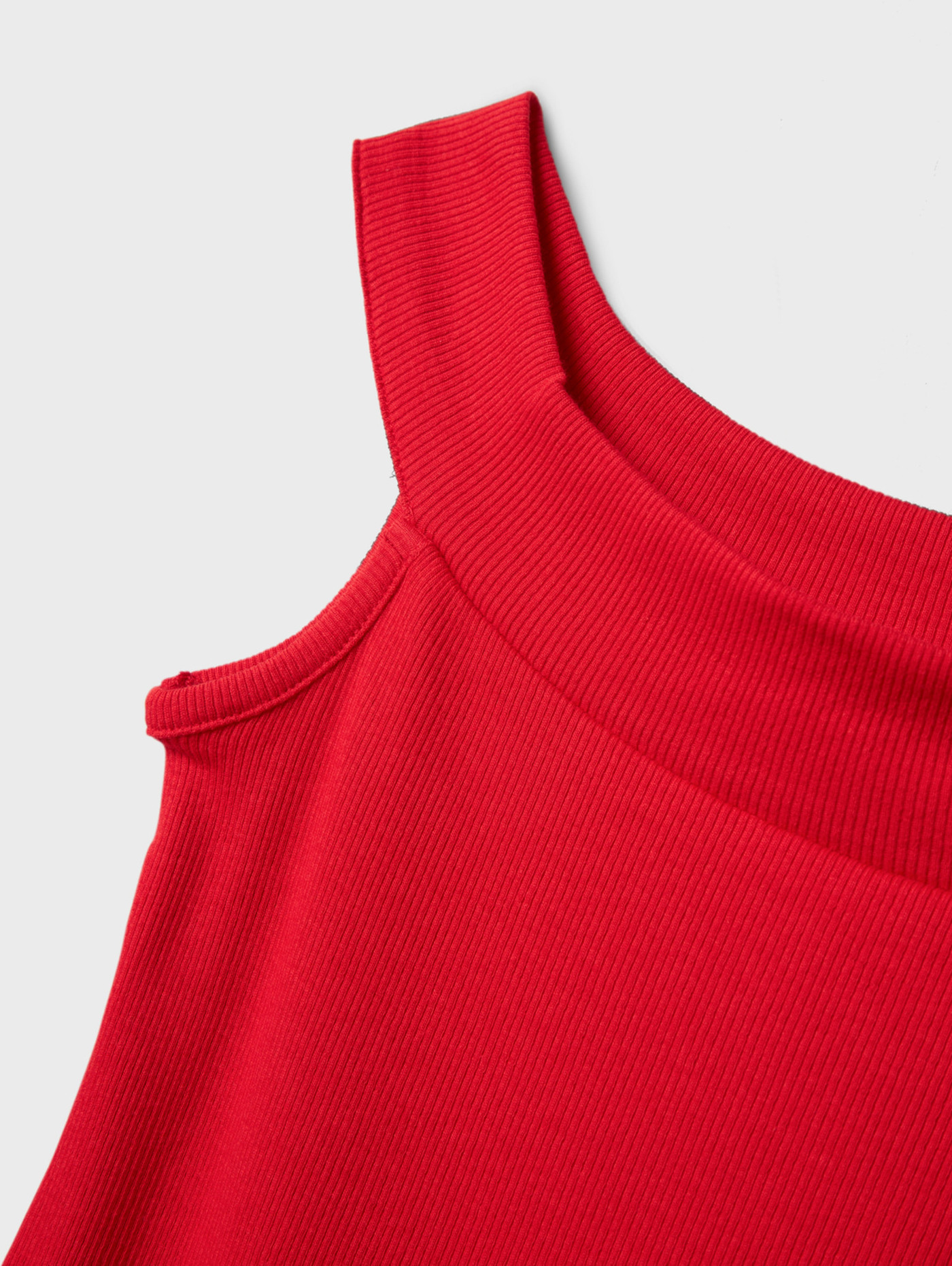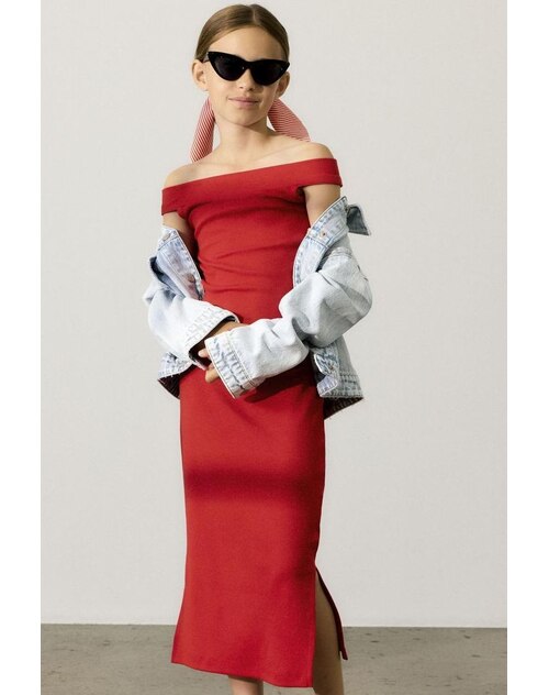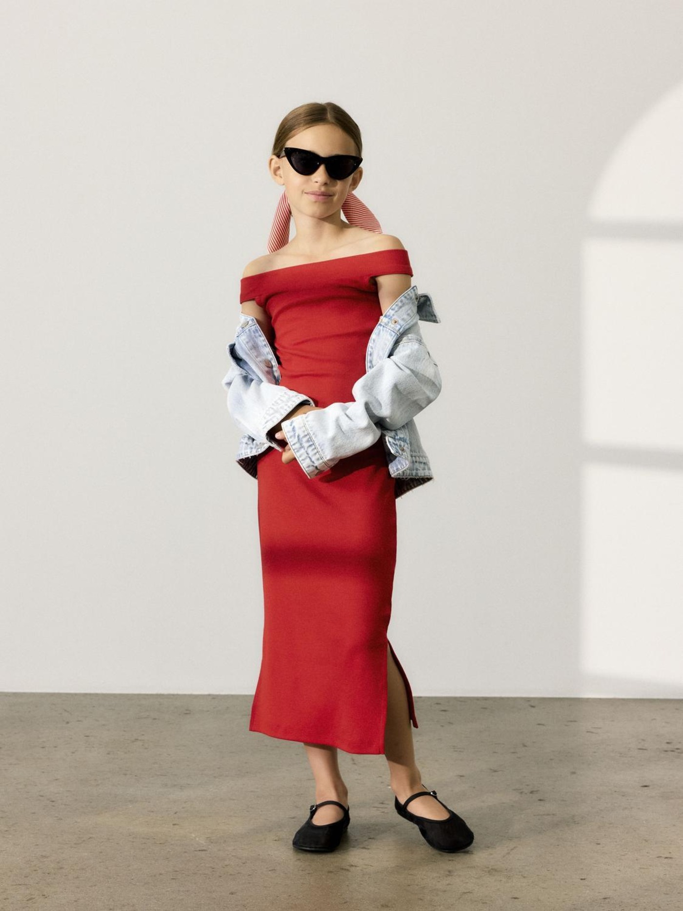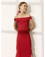 Slim-fitting long dress by Name it for girls. This red dress is a real eye-catcher with its Carmen neckline and side slits. The soft material is beautifully stretchy and comfortable to wear.