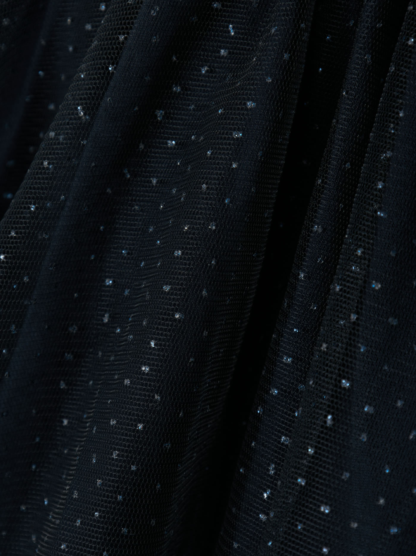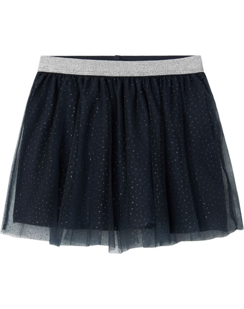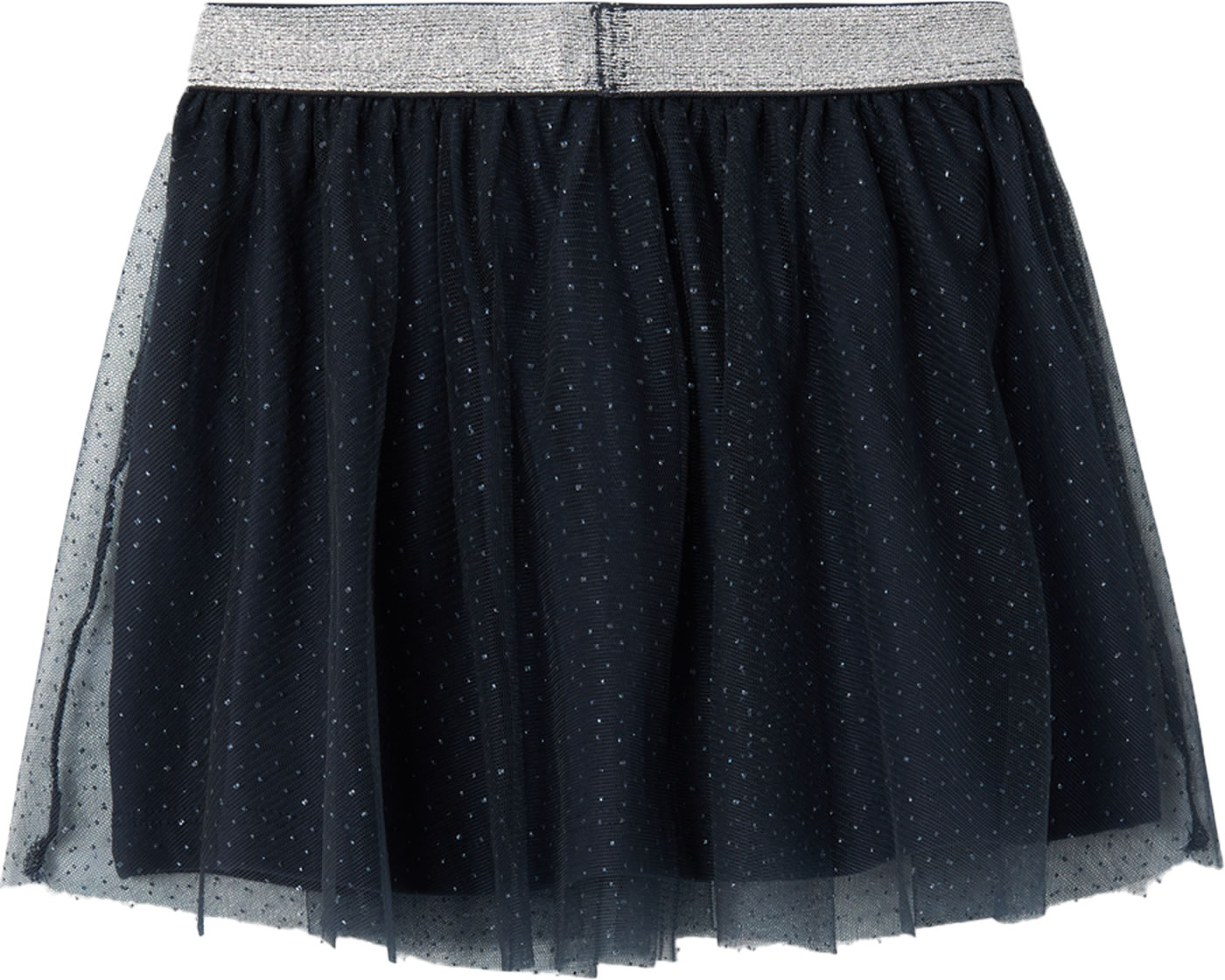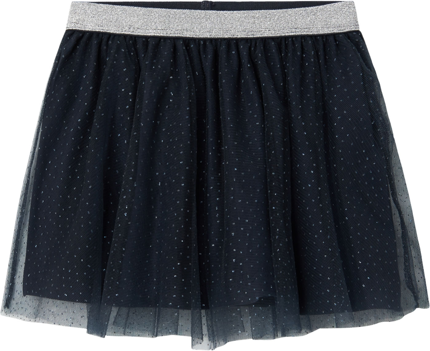 Wide swinging skirt from NAME IT. The skirt consists of a layer of glitter tulle and a cotton lining. The elastic cuffs ensure a perfect fit. A particularly beautiful detail are the glitter dots and the silver glitter waistband.