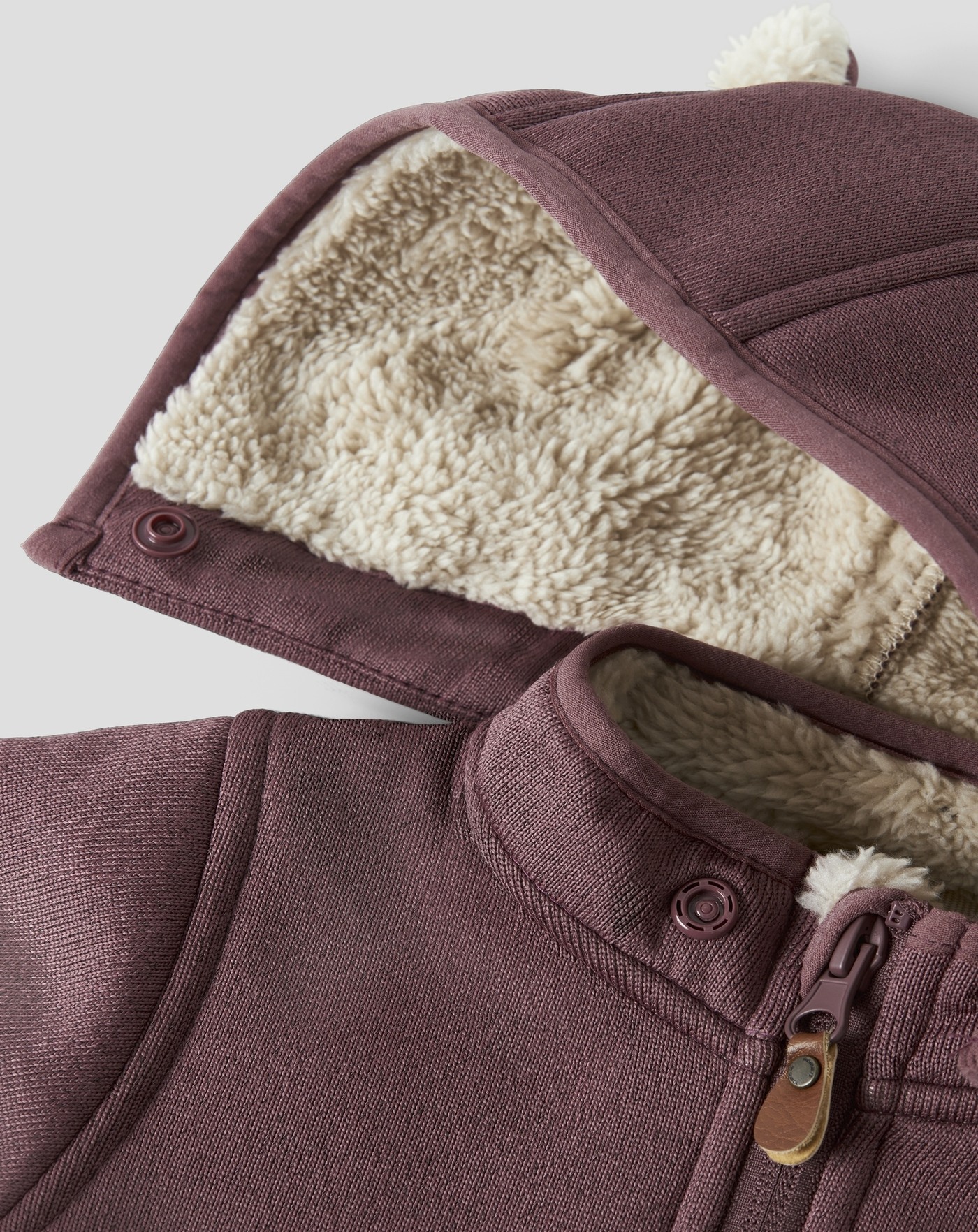 Furthermore, the hood is charming thanks to the two stitched-on bear ears, which act as ear flaps when the hat is worn. 🐻