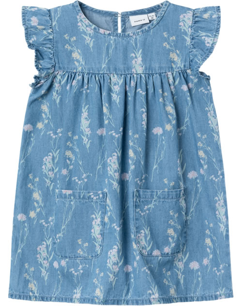 Pretty denim summer dress from NAME IT. The wide and airy cut is ideal for warm summer days. The all-over print with flowers is particularly beautiful. Two pockets on the front offer space for small items. A button at the neckline makes it easy to put on and take off.