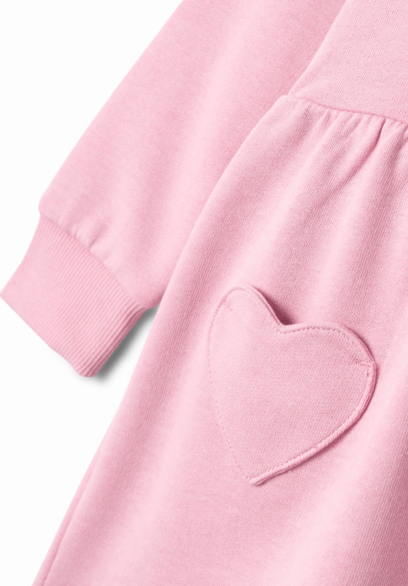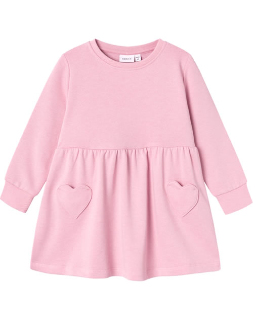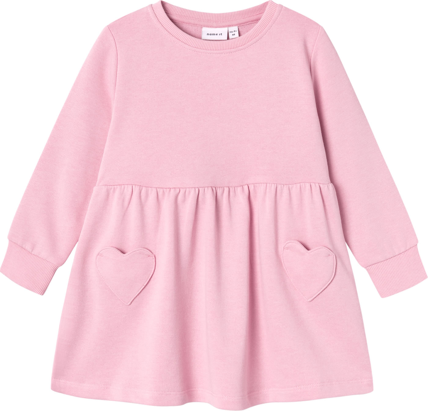 Sweat dress with long sleeves from NAME IT. The loose cut of the dress offers plenty of freedom of movement. It can be worn alone or can be combined with leggings or jeans. The heart-shaped pockets on the front are a nice detail.