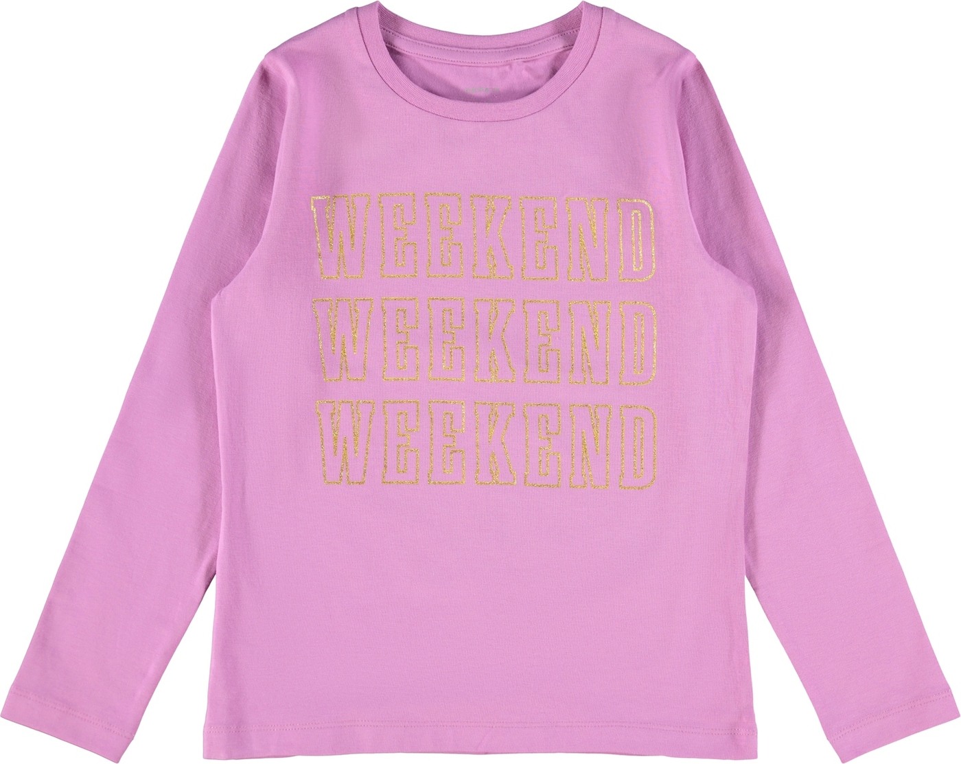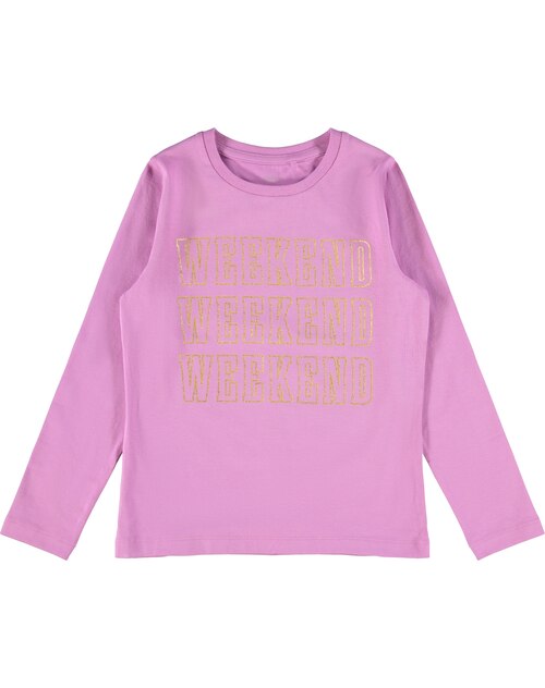 Long sleeve shirt for girls by NAME IT. The t-shirt has a great print with glitter on the front. The soft material ensures a high level of comfort.