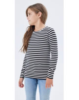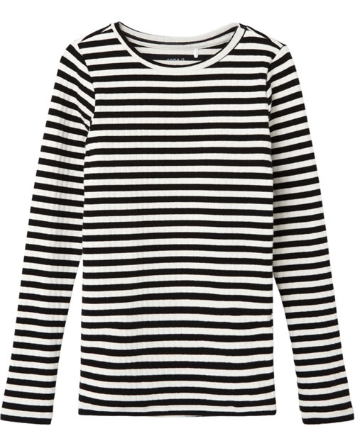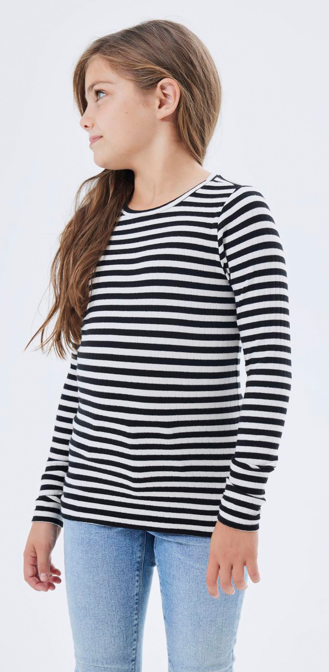 Long-sleeved shirt for girls from NAME IT. The shirt in a ribbed structure with stripes has a round neckline. This basic piece is easy to combine. The soft material ensures a high level of comfort.