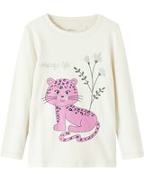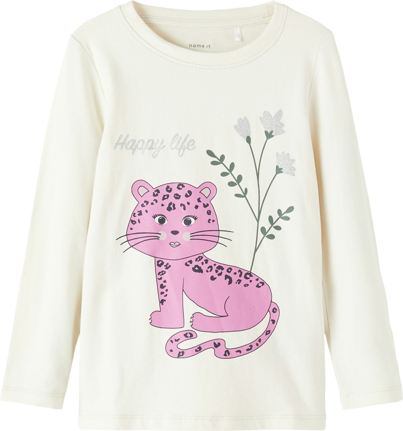 Long sleeve shirt for girls by NAME IT. The t-shirt has a great print with glitter on the front. The soft material ensures a high level of comfort.