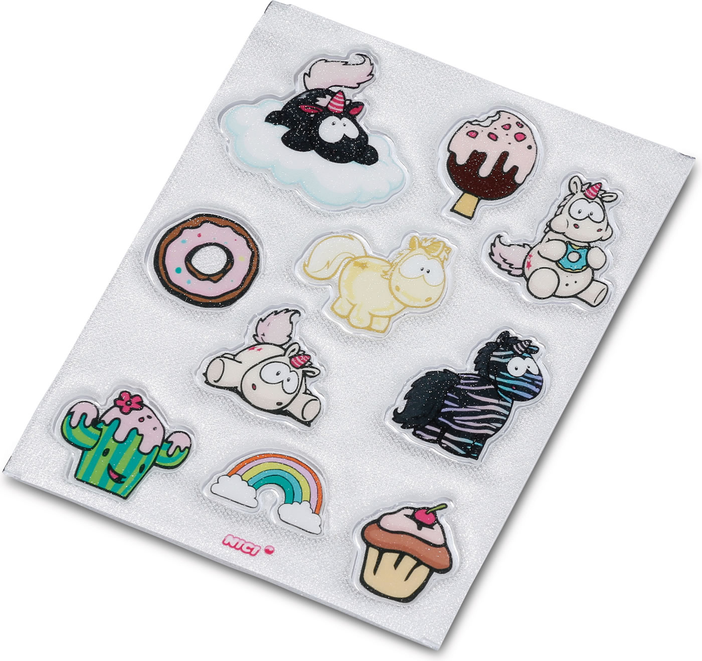 10 stickers with different motifs on one sheet.