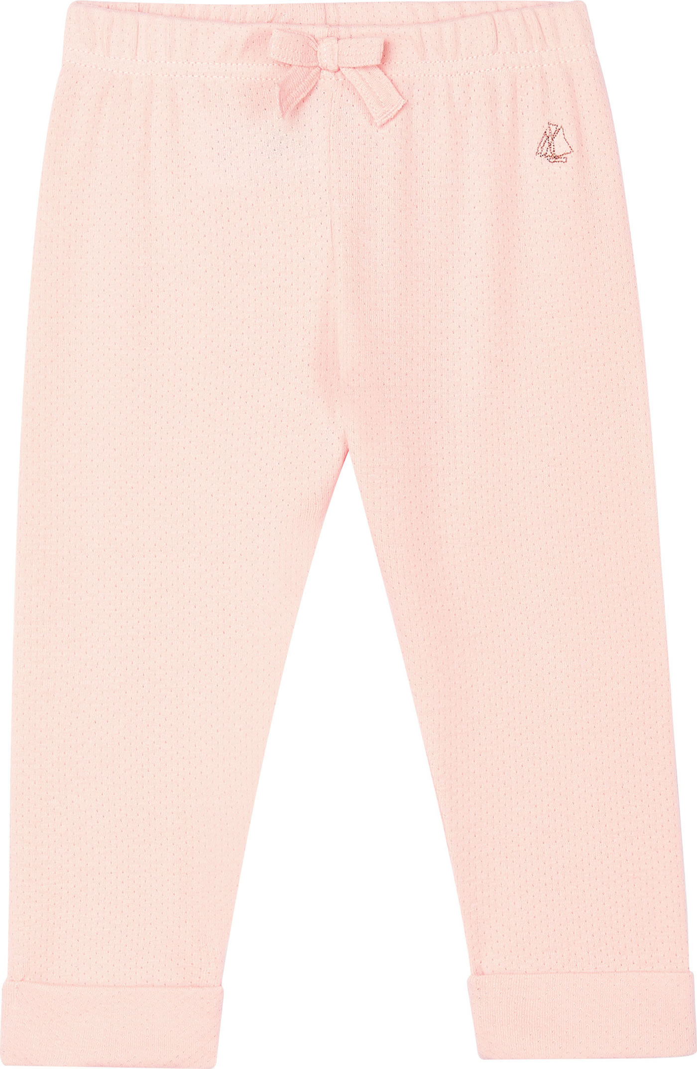 Hübsche Babyhose in rosa von PETIT BATEAU für Mädchen aus 1x1-Rippstrick. Kleine Details wie das kleine aufgestickte Petit Bateau-Segelboot und die Schleife am Gummibund zeichnen die weiche Hose mit festgenähten Beinumschlägen aus.