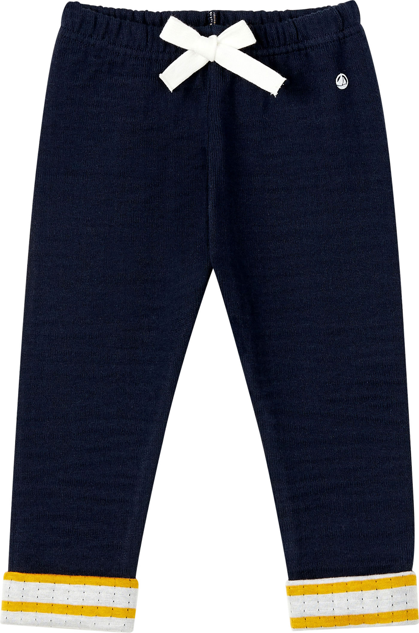 These baby boy pants by PETIT BATEAU are made of double jersey and impress with their beautiful design. The striped leg wraps are a colorful detail. The cotton fabric feels pleasantly soft and therefore promises the highest level of comfort for the little ones. Great baby boy pants for every day.