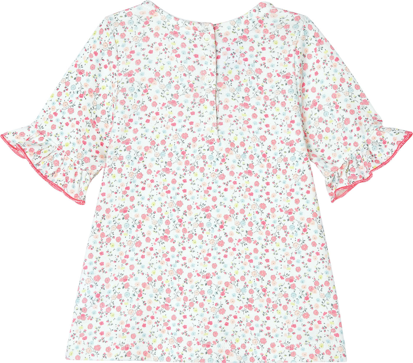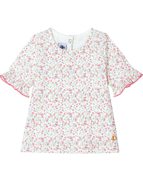 This pretty A-line t-shirt with short ruffled sleeves and summery scattered floral pattern comes from PETIT BATEAU for girls. Pink stitching is a great eye-catcher. A small snap button on the neck makes it easier to put on and take off. The soft material also ensures a high level of comfort.