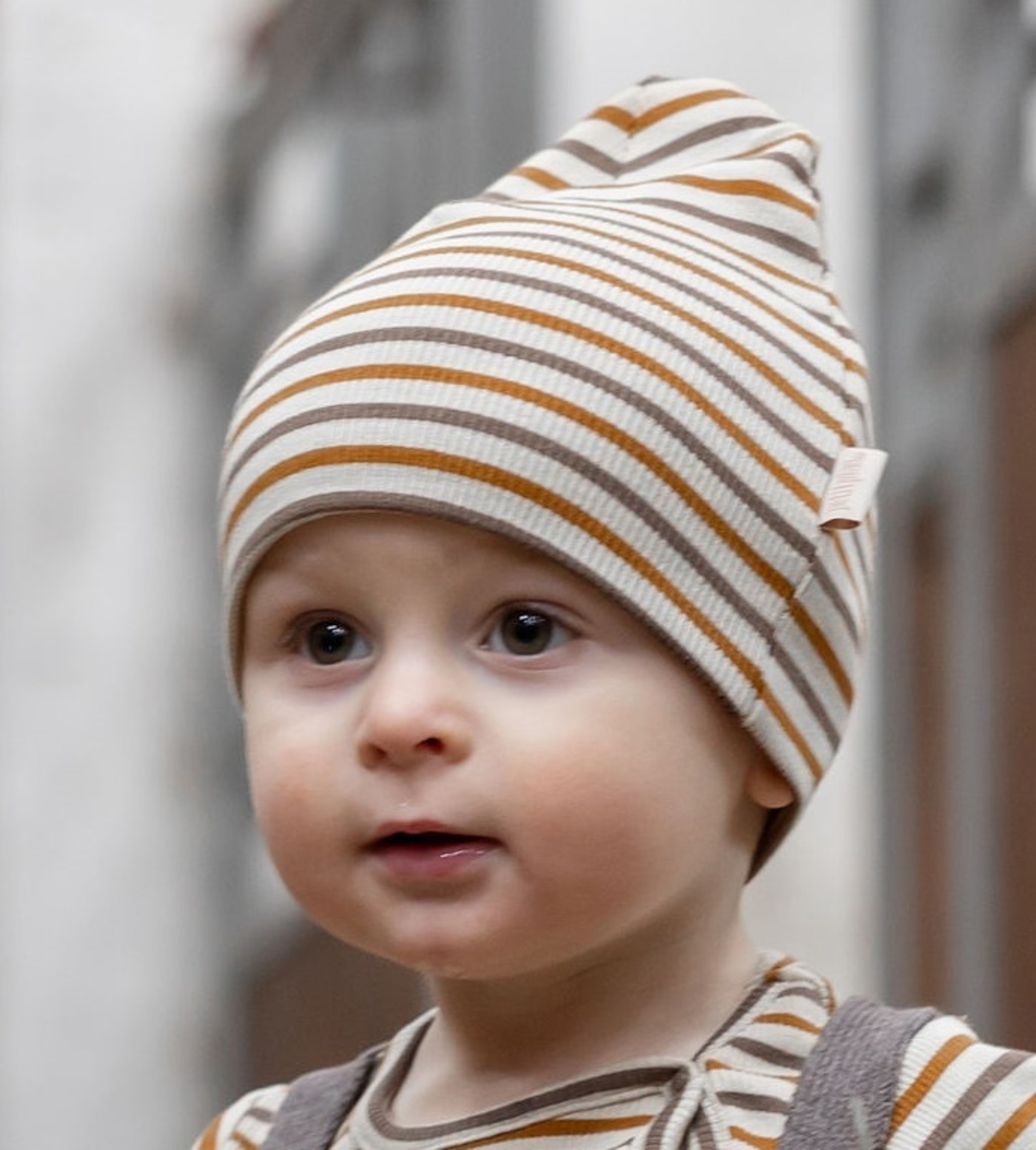 Beanie with classic stripes from Petit Piao in Organic Cotton.