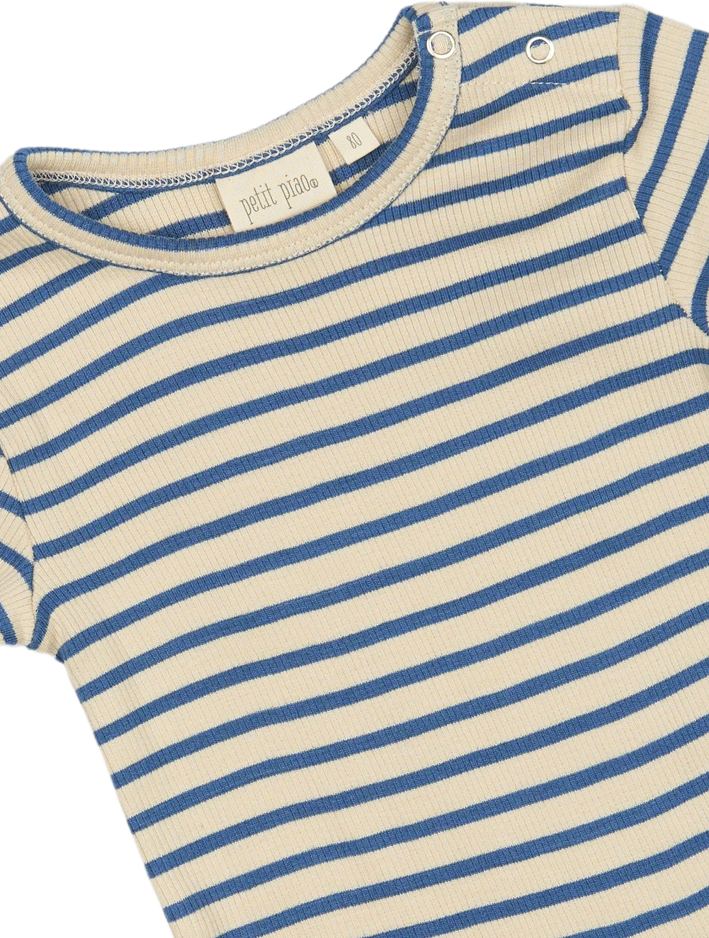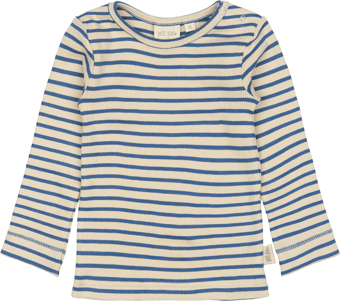 Up to size 92, the ribbed shirts have two little press studs in the shoulder seam for easy opening; from size 98 onwards, there are no buttons.