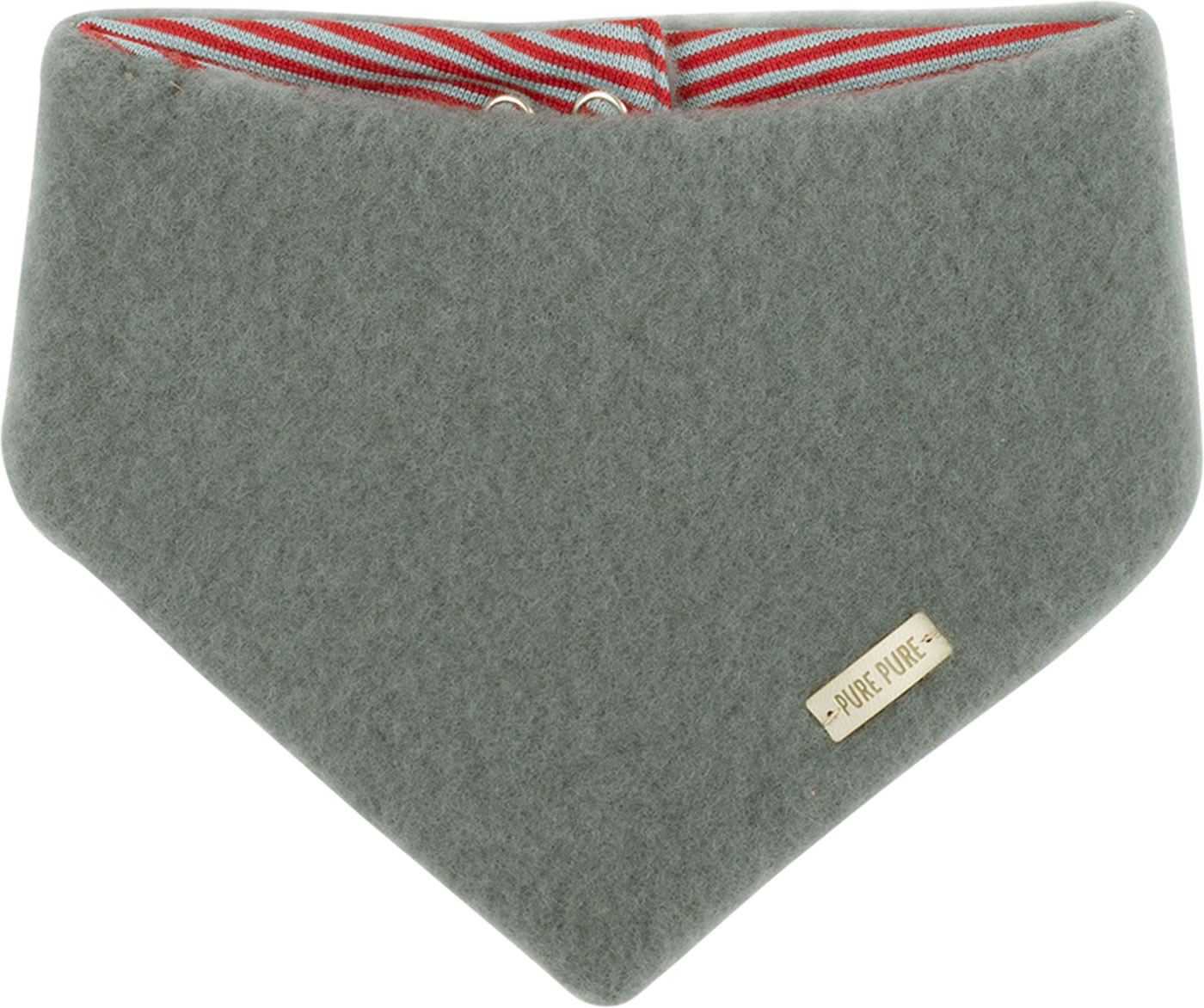 Warm and soft scarf for babies made of wool fleece from Pure Pure by Bauer. The scarf is lined with striped cotton jersey. The scarf is closed with two snaps, which can also be used to adjust the width.