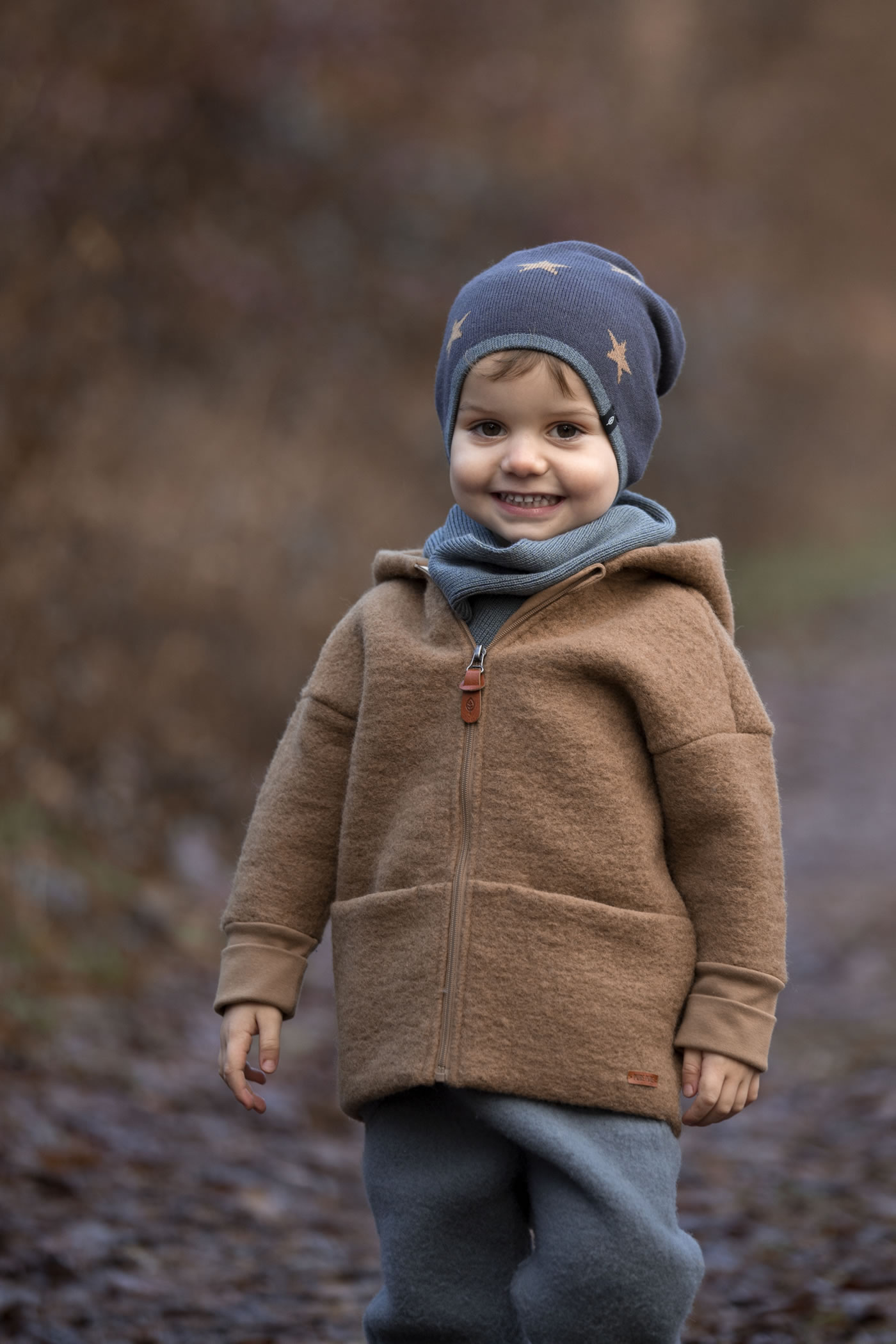 Warm knitted hat for kids from Pure Pure by Bauer. The blend of wool and silk provides warmth and offers a comfortable fit. The beanie hat has a great star pattern.