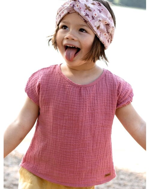 Cute shirt for girls from PURE PURE by Bauer made from muslin fabric, which is made from wonderfully soft organic cotton. With chic details such as the ruffles at the front of the neckline and the elastic cuffs, this shirt will quickly become your favorite piece of clothing.