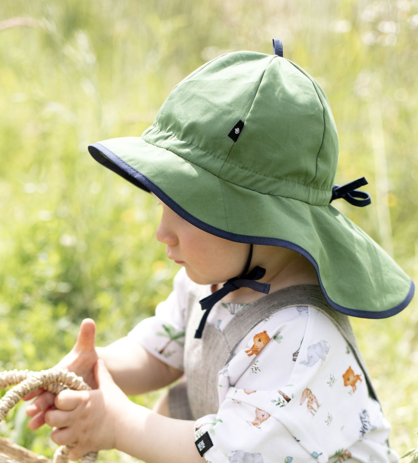 Pure Pure by Bauer sun hat with UV-/neck protection made of organic cotton - Matcha