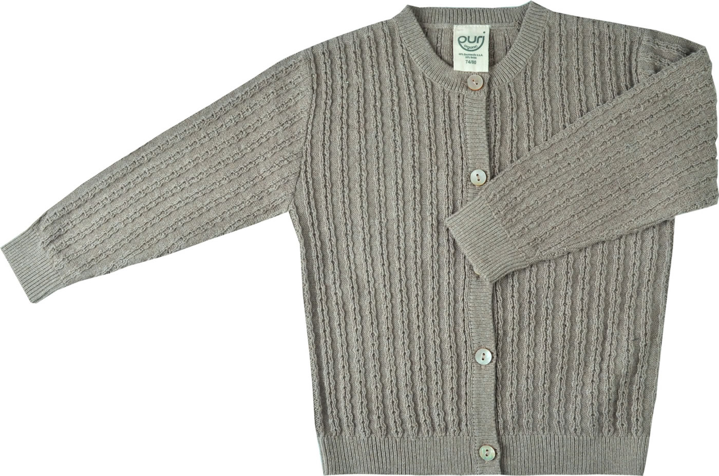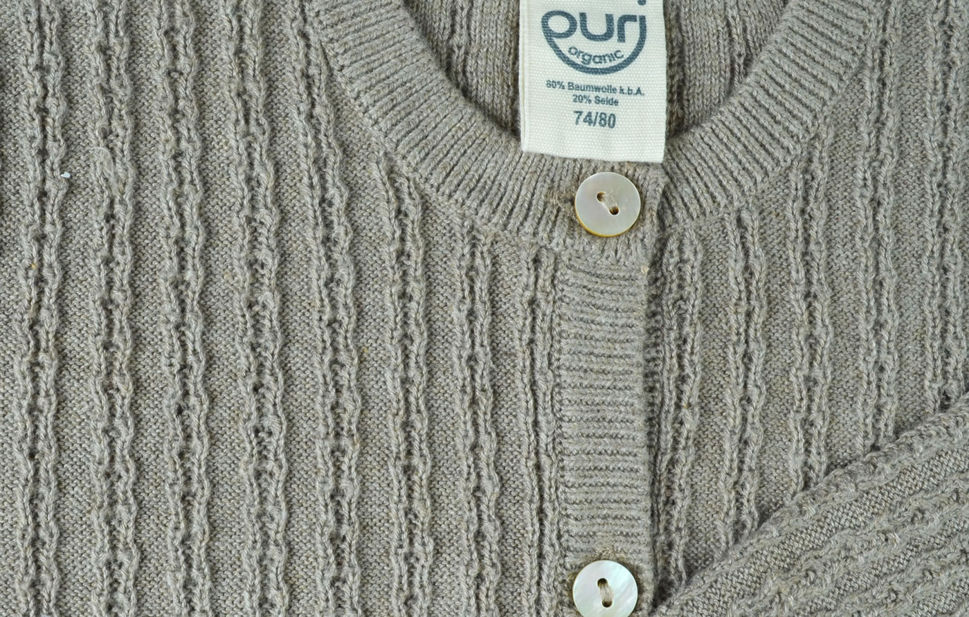 Puri Organic baby cardigan knit taupe SI 42 GOTS