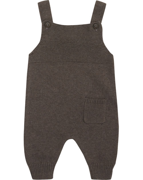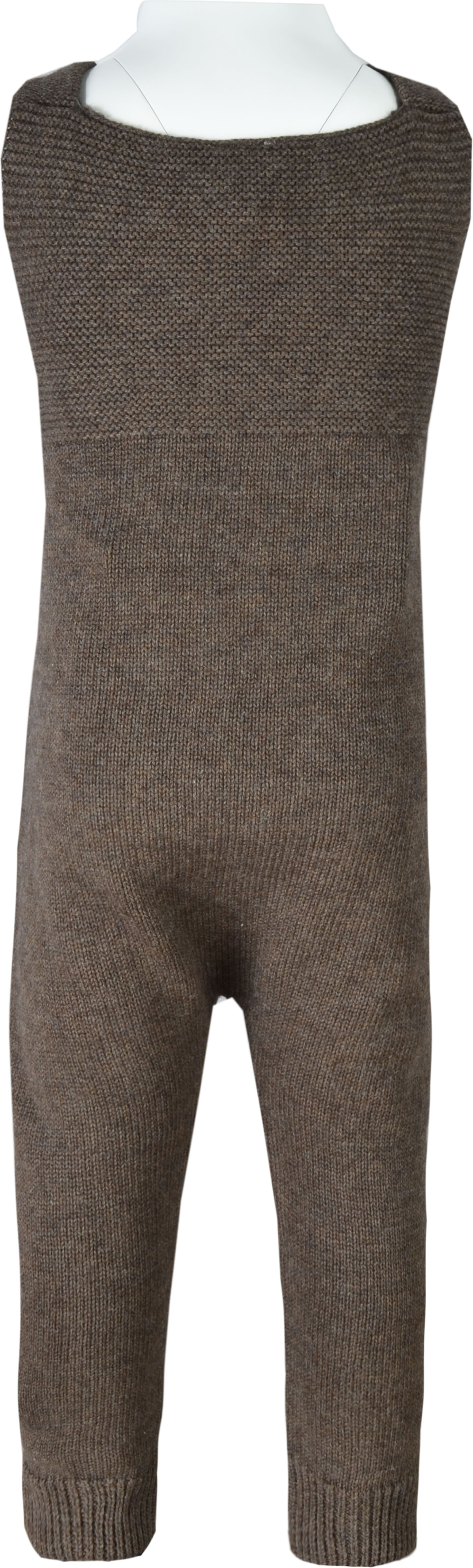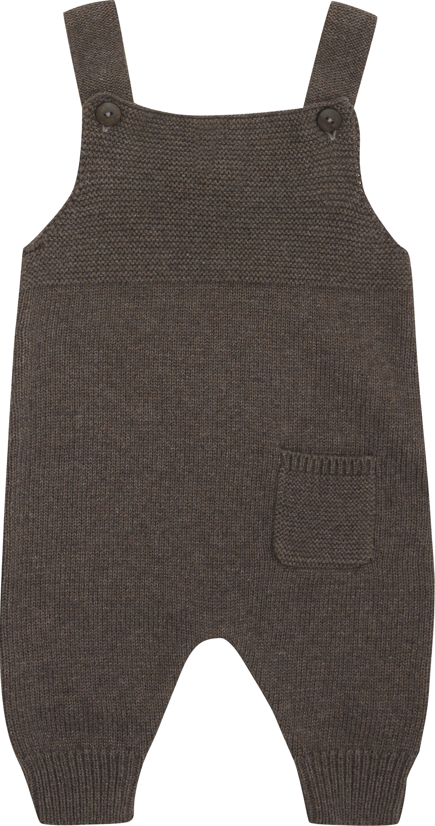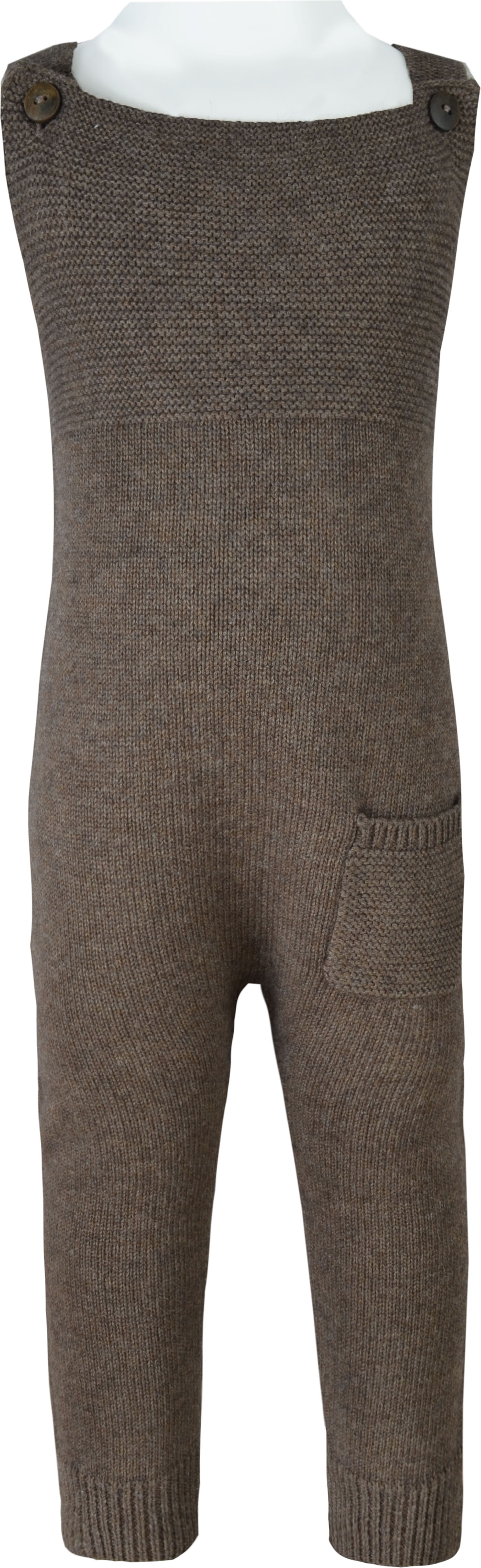 Soft and cuddly baby knitted dungarees from PURI ORGANIC for the little ones. The beautiful piece of clothing in a beautiful brown tone is very easy to put on and take off and has extra space in the bottom area for the diaper. A small pocket on the front is a playful detail. Two small buttons are attached to fasten the straps. The material made from certified organic cotton and virgin wool is very gentle on baby skin.
