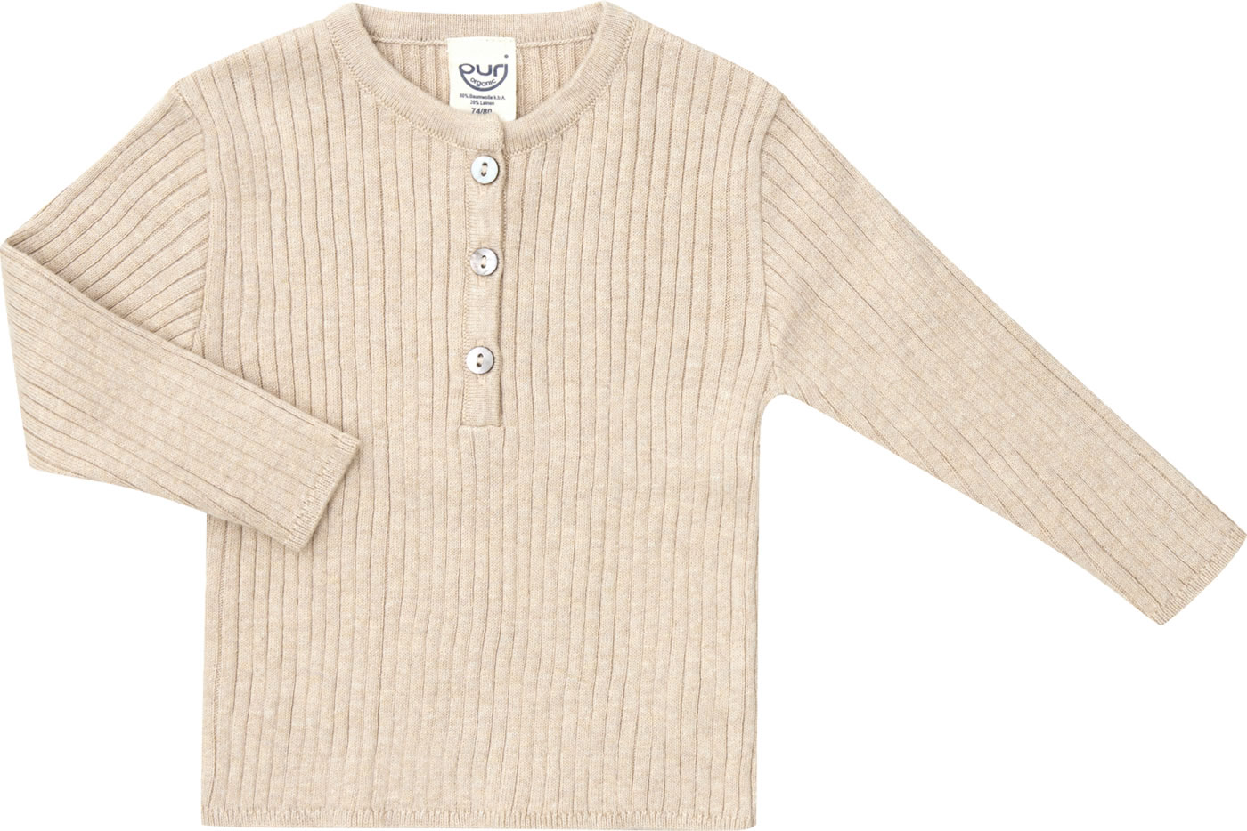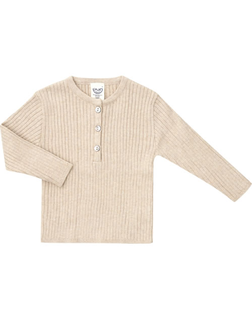 Puri Organic sweater Henley rib knit sand LIN 44 GOTS