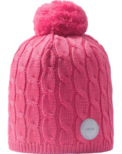 Double-layer, warm wool-knit Nyksund hat with bobble by REIMA. The great cable knit pattern and the bobble make the hat a real eye-catcher. Windproof ear flaps between the outer layer and the lining protect the small ears from cold wind. The hat is lined with soft, warm fleece.