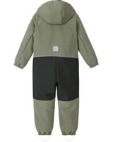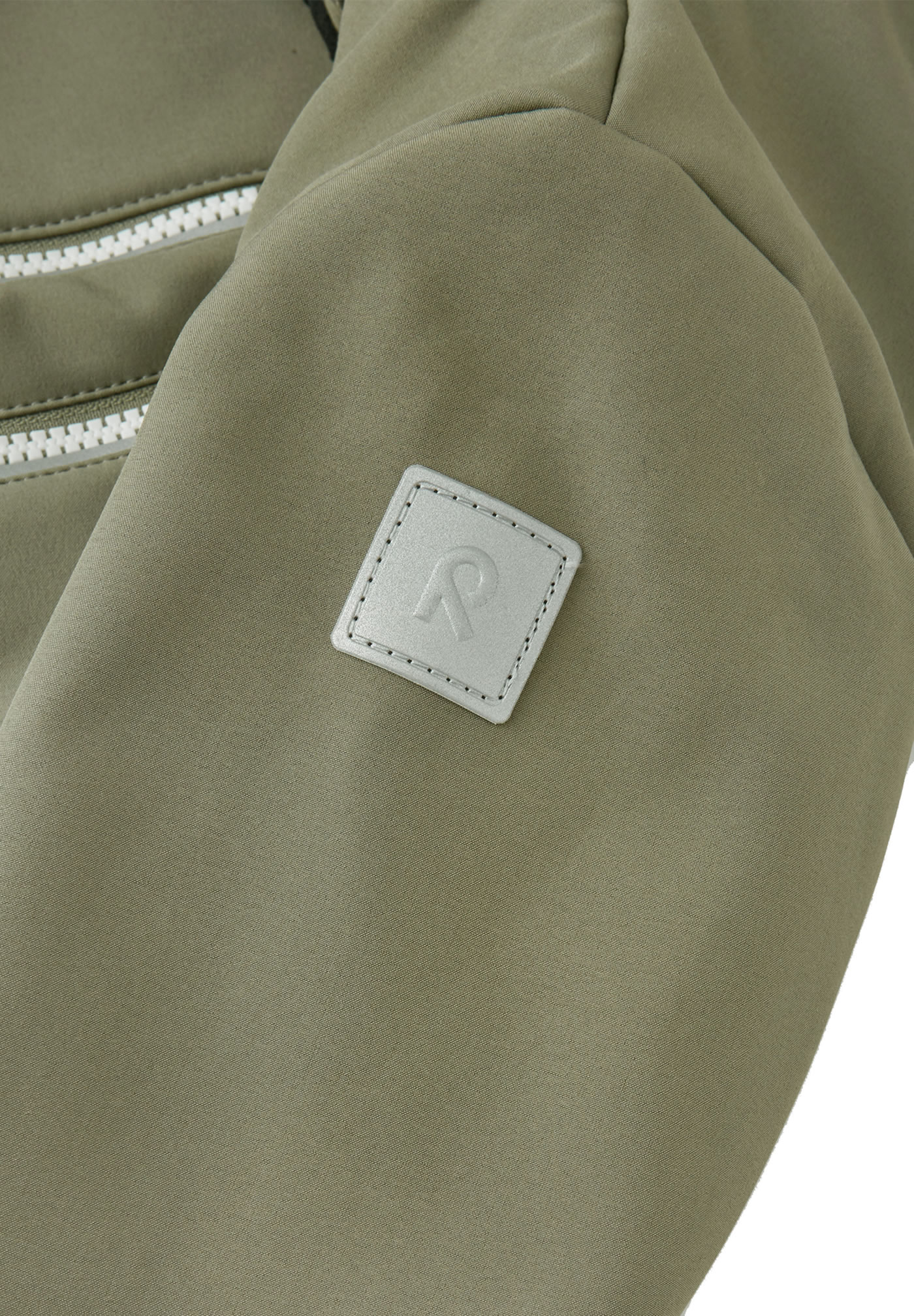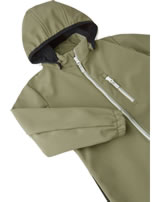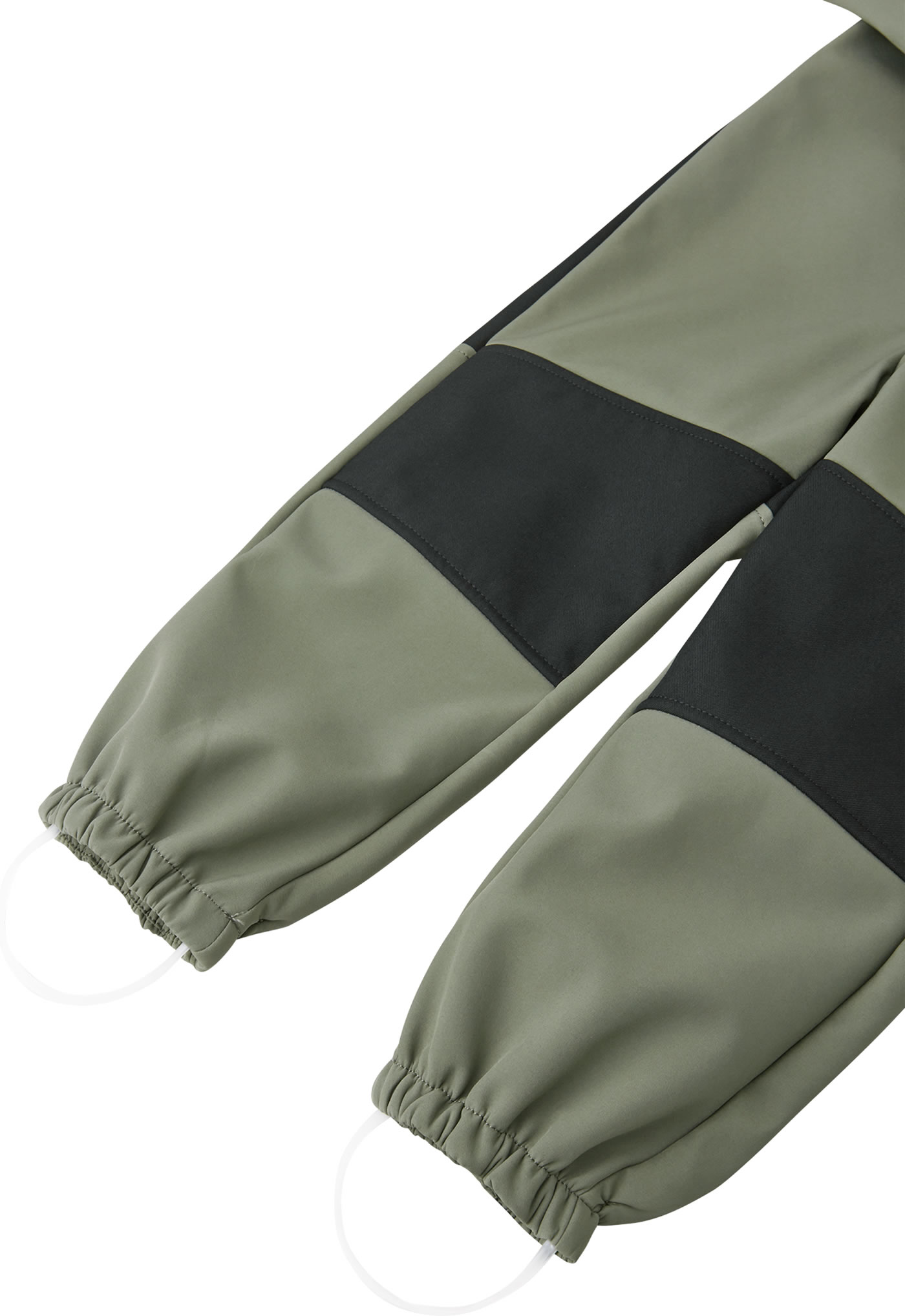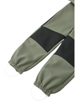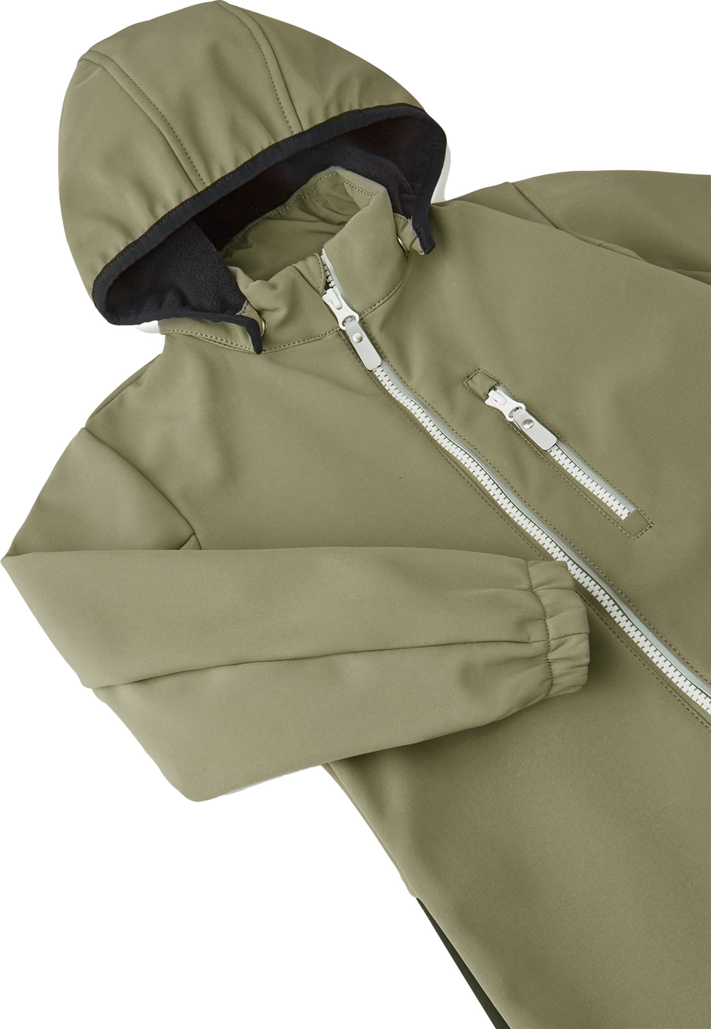 The windproof softshell overall NURMES by REIMA for boys and girls is breathable, water-repellent and lined with soft fleece on the inside. Great details such as the detachable hood and the reflective elements make it a companion for outdoor play. The full zip has a chin guard and makes it easy to put on and take off. Zippered pockets provide space for small treasures. The overall is made of durable material and reinforcements on the knees and bottom make it very robust.