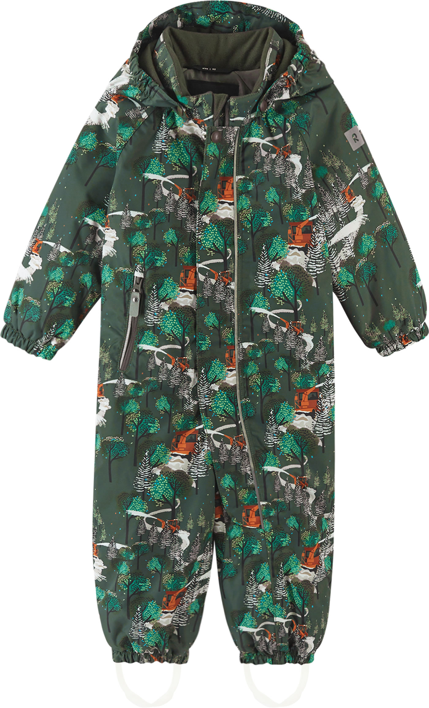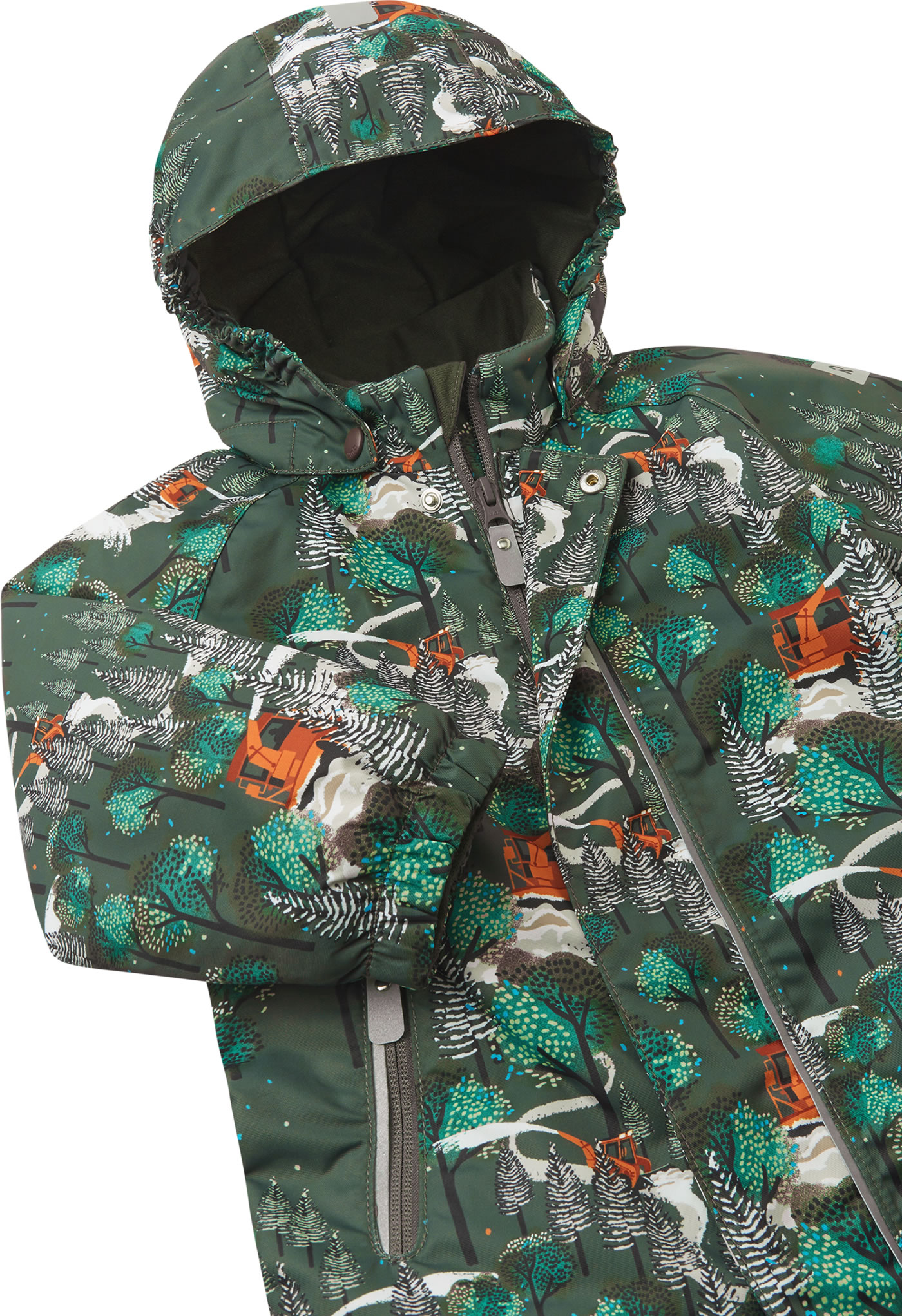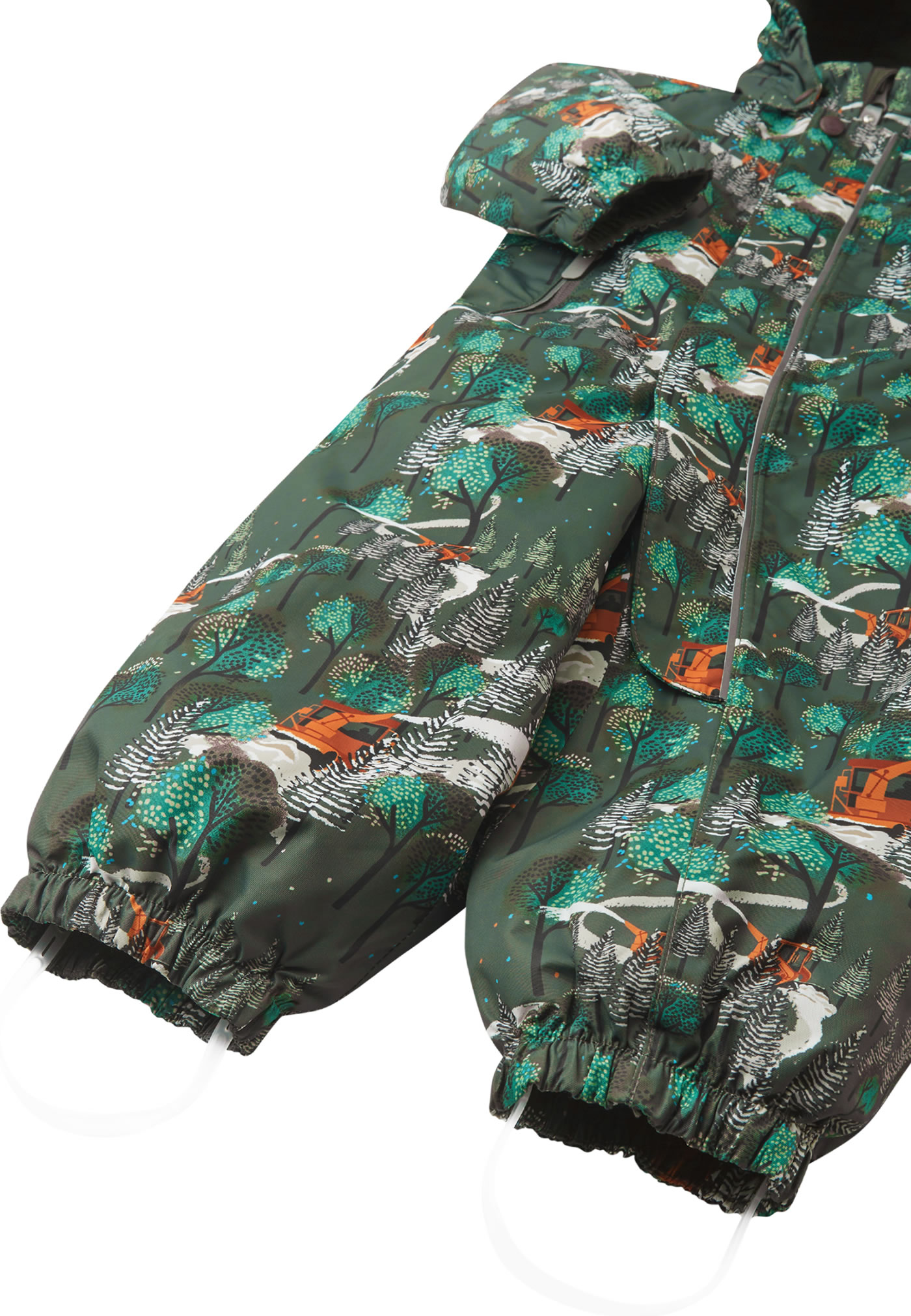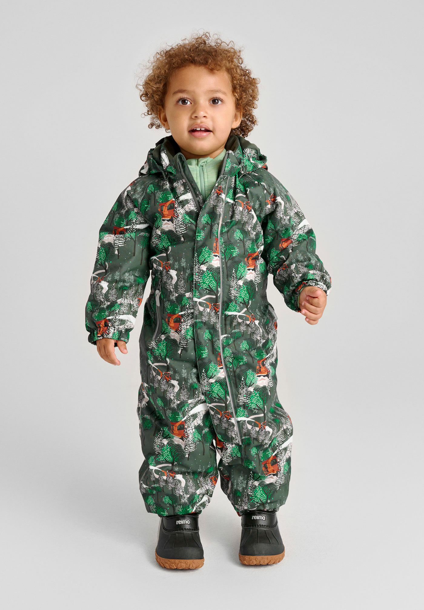 Excellent winter overall Puhuri by REIMA for toddlers! The main seams of the overalls made of water- and windproof, dirt-repellent material are sealed. The insulated bottom of the trousers provides additional warmth when playing in the snow. The long zipper makes it easy to put on and take off. Valuable little things are in good hands in the small zip pocket. The detachable hood is lined with soft fleece.