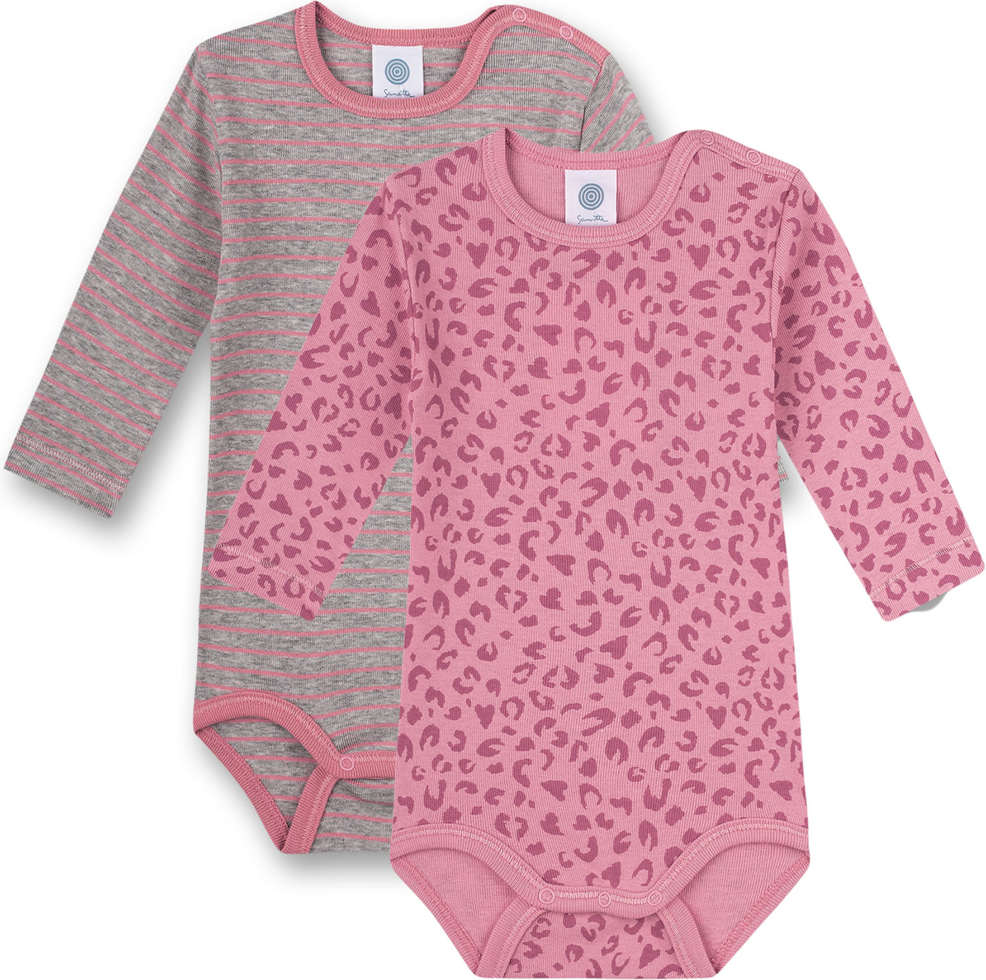Great set consisting of 2 long-sleeved bodies in fine rib quality by SANETTA for girls. One body comes in gray and pink stripes, the other body has a funny Leo all-over print. Thanks to the nickel-free press studs on the shoulder and in the crotch, changing and changing is child's play. The bodies are made of 100% organic cotton.