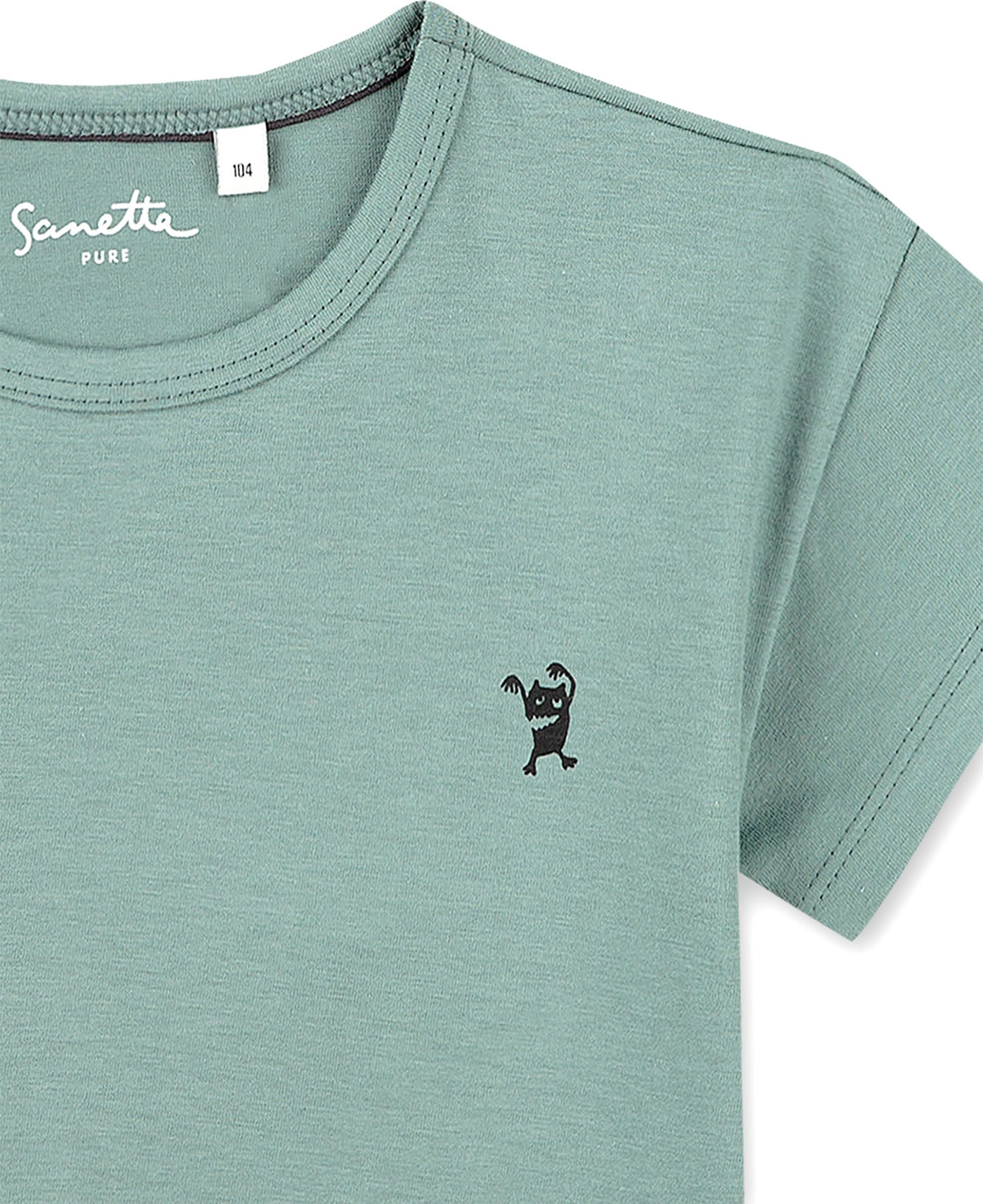 Nice short-sleeved shirt in blush thyme with a small monster print on the left chest by SANETTA PURE for boys and girls. The cozy T-shirt made of 100% organic cotton is a great piece of clothing for the warm days of the year, which can be easily combined.