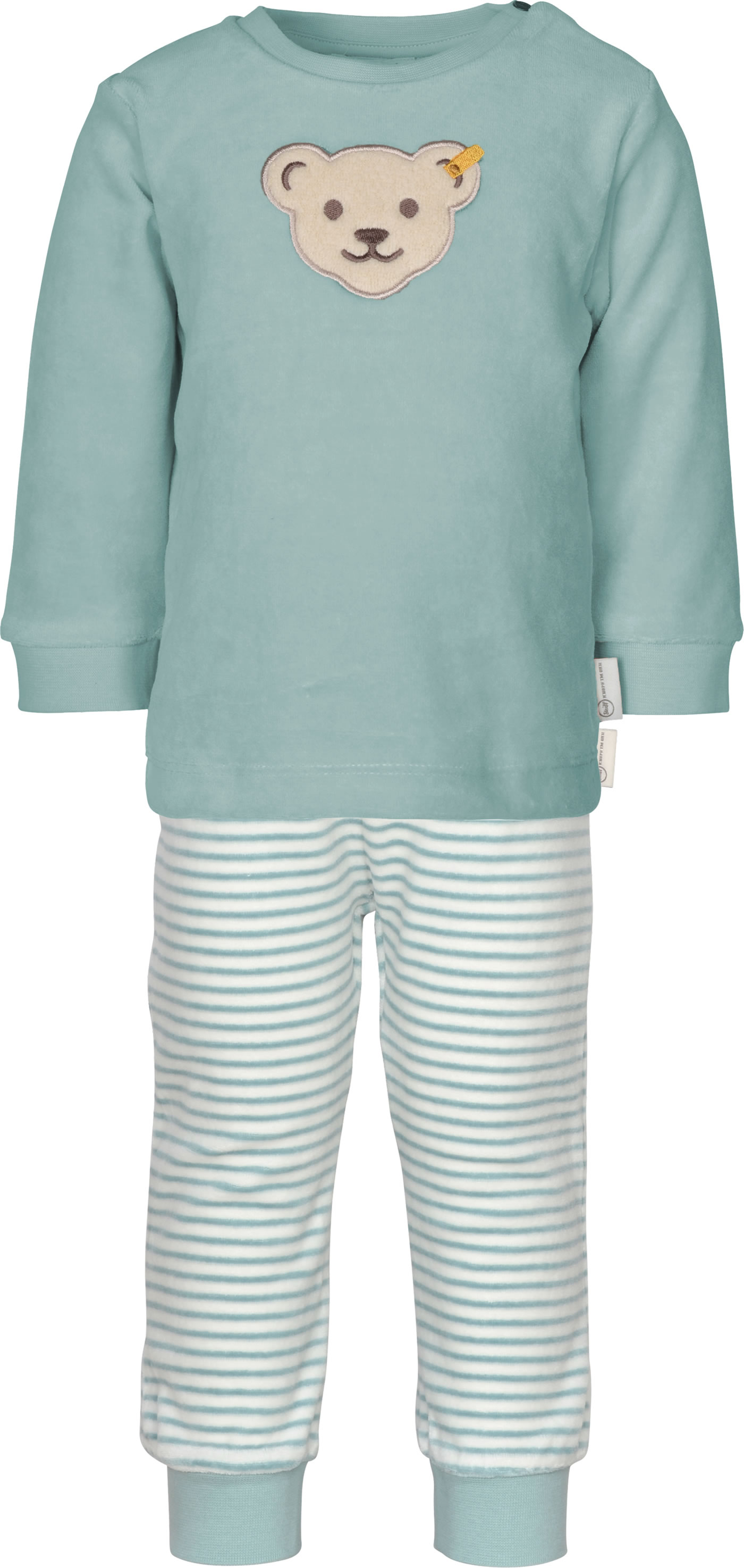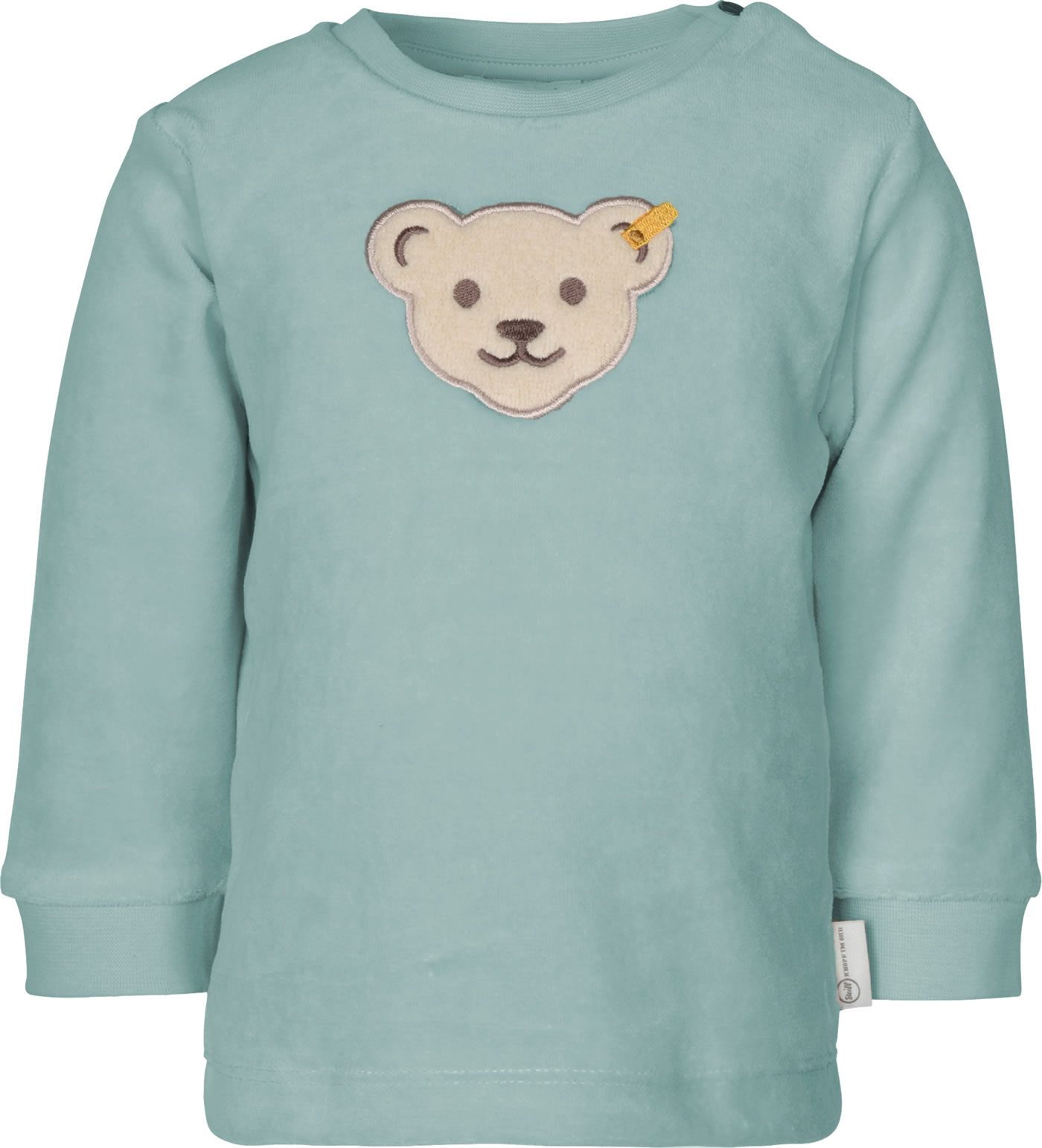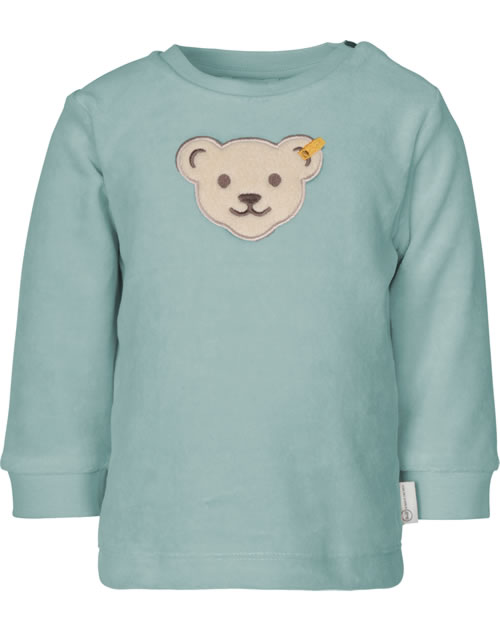 Beautiful sweatshirt made of soft Nicki material from the STEIFF Organic Dots collection. The STEIFF bear adorns the front of the shirt. Two press studs at the neckline make it easy to put on and take off.