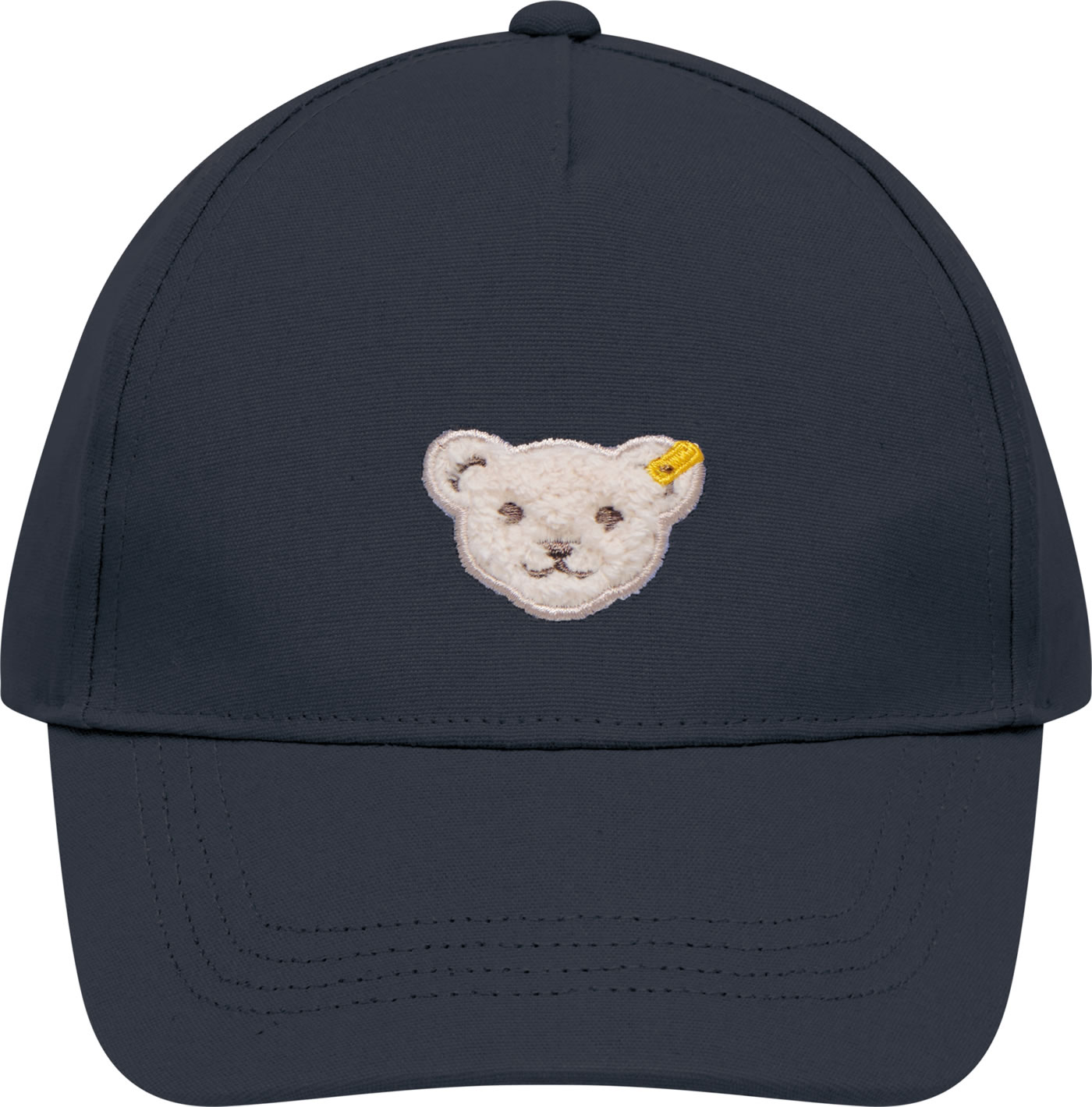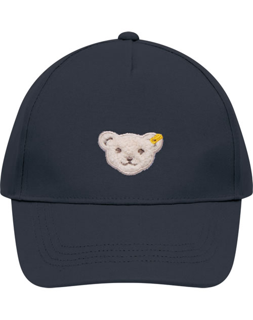 Sporty baseball cap for boys from Steiff's Under the Surface collection. The STEIFF bear is on the front of the hat. The face is well protected from the sun by the peak, and the elastic band at the neck ensures a flexible width.