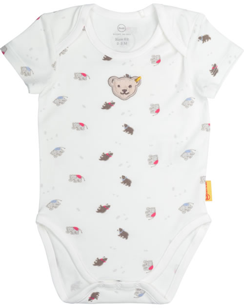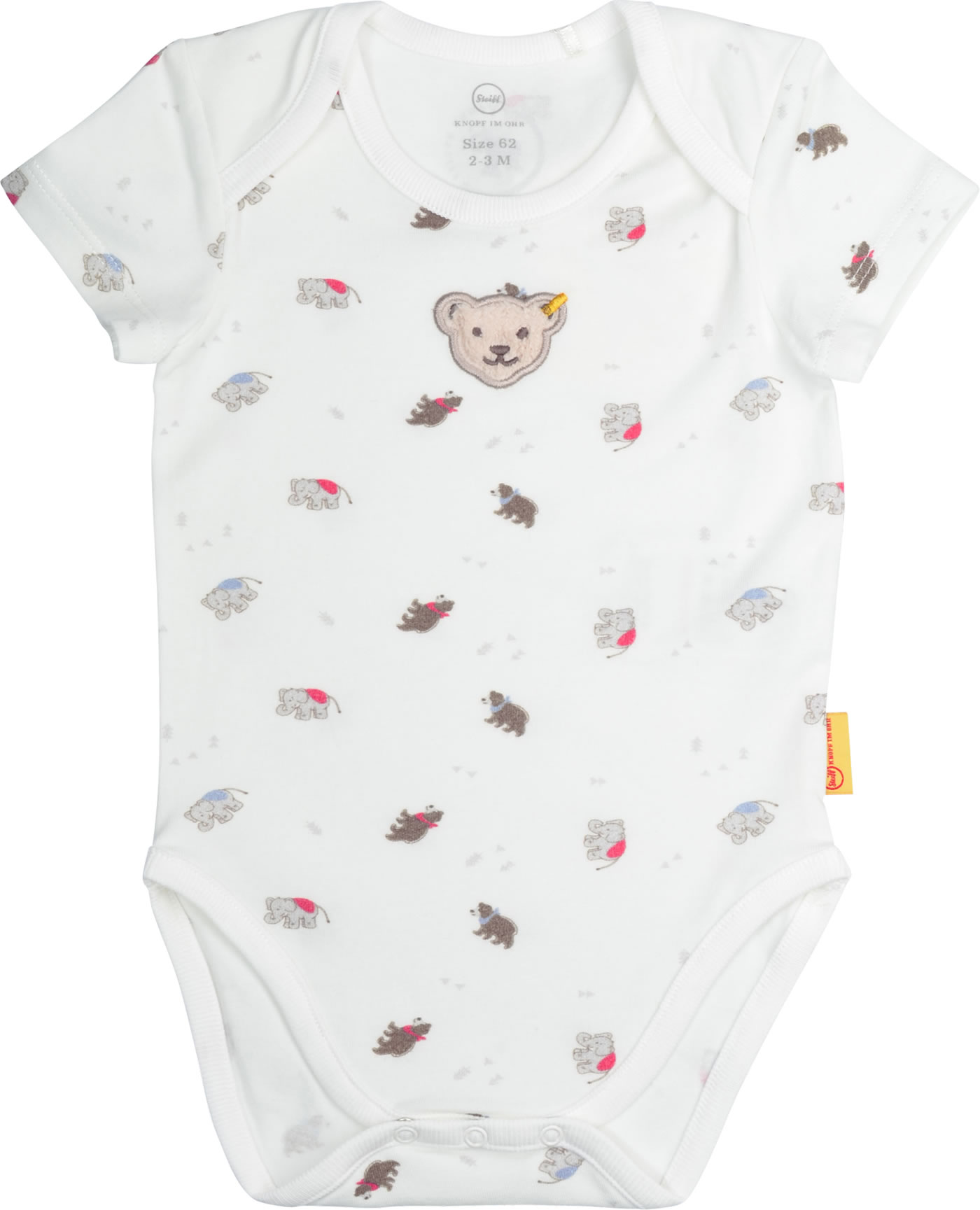 Elephants and teddy bears, the symbolic figures of the early years, can be found on the body for boys and girls. And of course the fluffy STEIFF bear on the chest should not be missing.