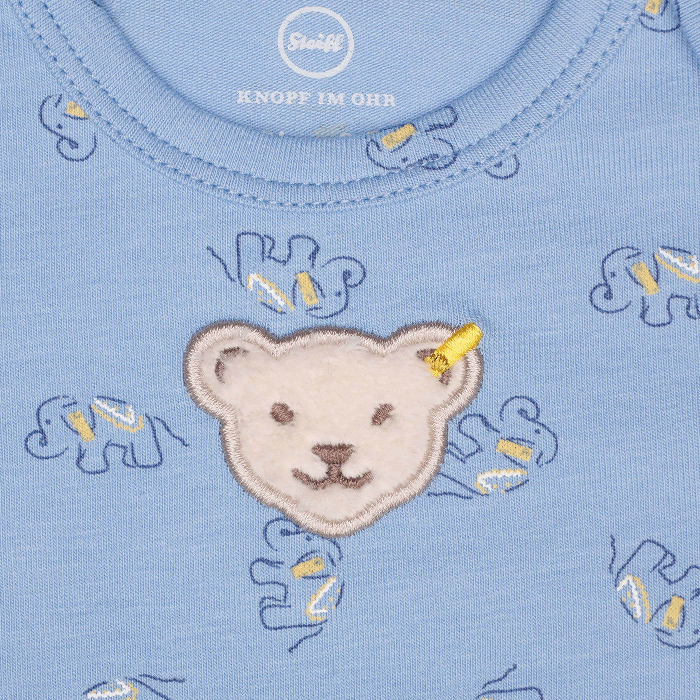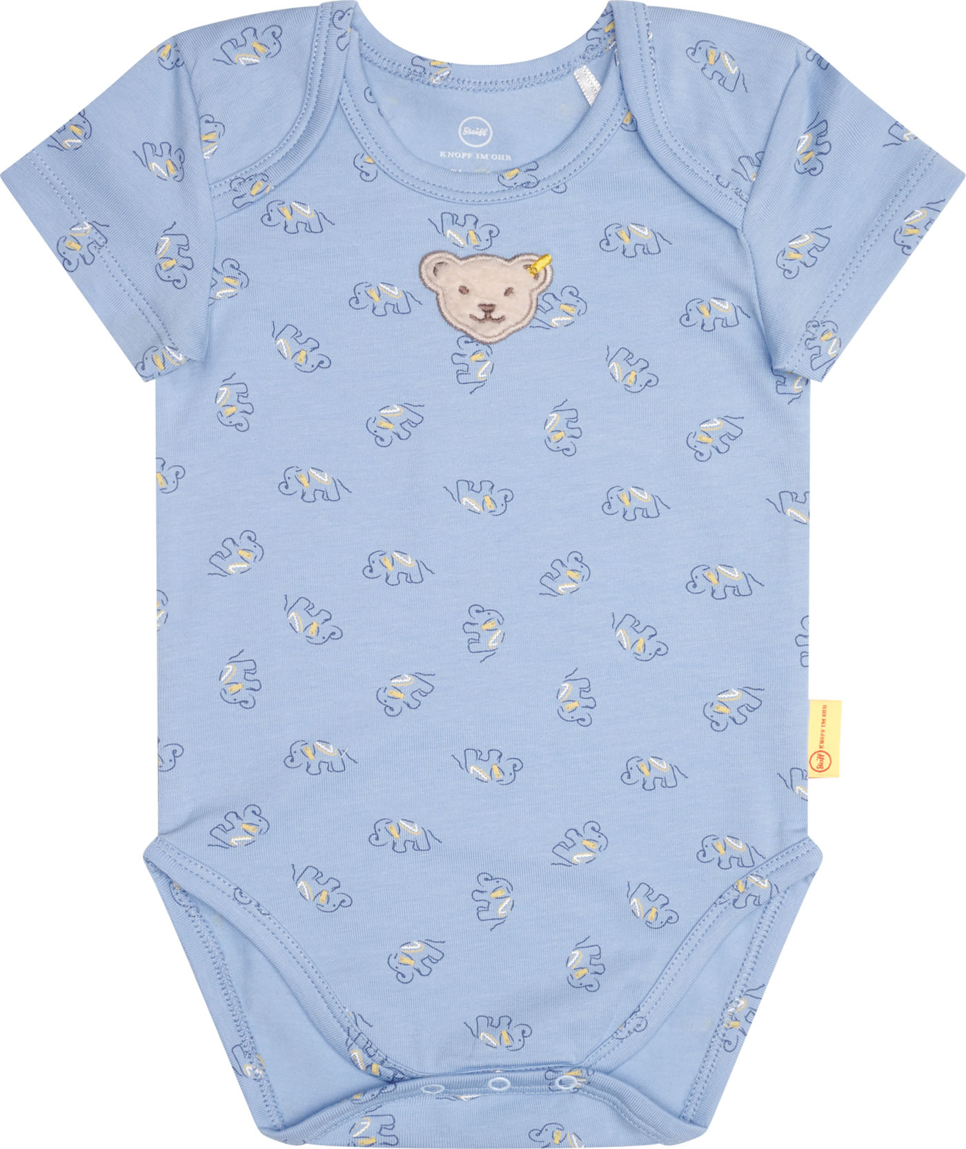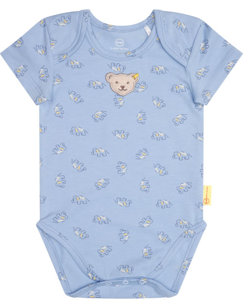 Body with short sleeves for boys from the STEIFF Elephant Ride collection. The STEIFF bear is on the chest. The press studs in the crotch and the pull-on collar help you put on and take off. The body with the funny elephants is made of soft jersey and is very comfortable to wear.