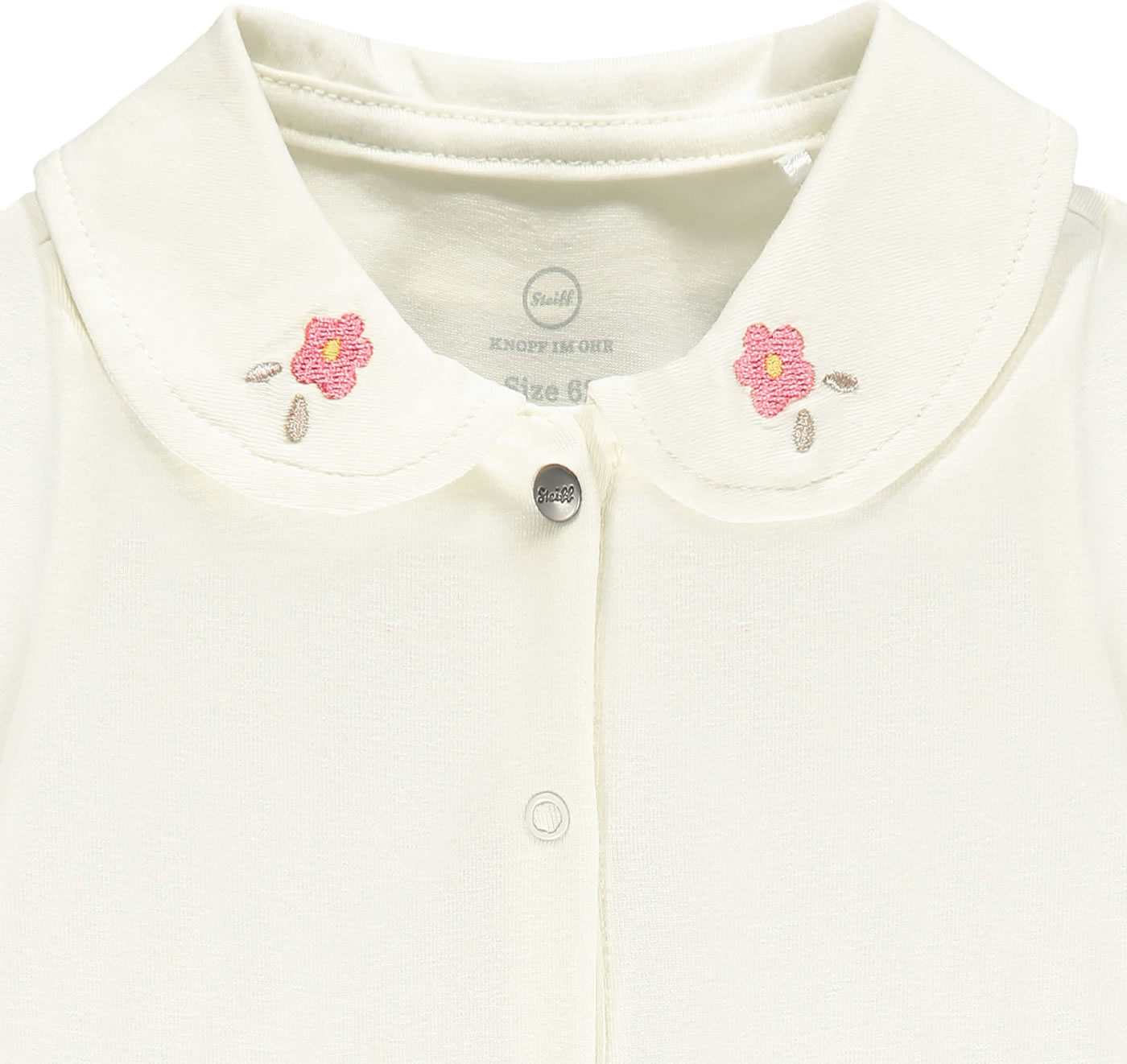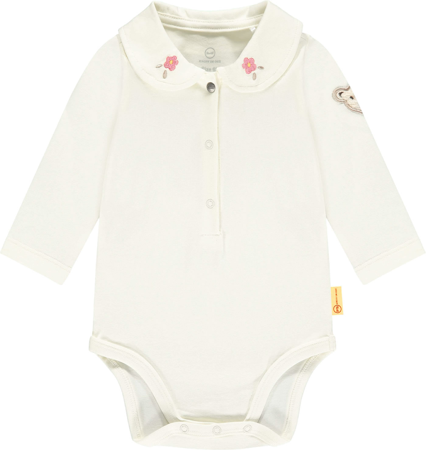 Body with long sleeves for girls from the STEIFF Best Friends collection. Nice details are the STEIFF bear on the left sleeve and the collar with embroidered flowers. Snap fasteners make it easier to put on and take off. The soft material offers a high level of comfort.