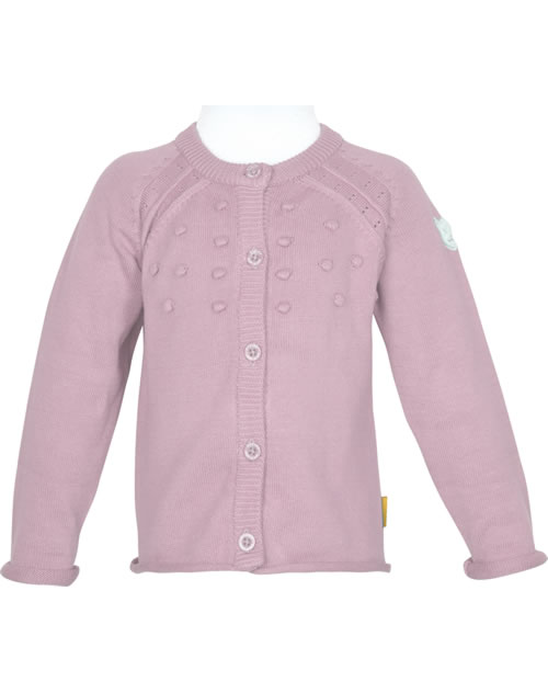 Pretty cardigan with continuous button placket by STEIFF for girls. The great garment from the Sweet Heart collection can be combined in many ways and thanks to the soft cotton it is extremely comfortable to wear. Particularly nice details are the knitted knobs on the front and the hole pattern on the raglan sleeves.