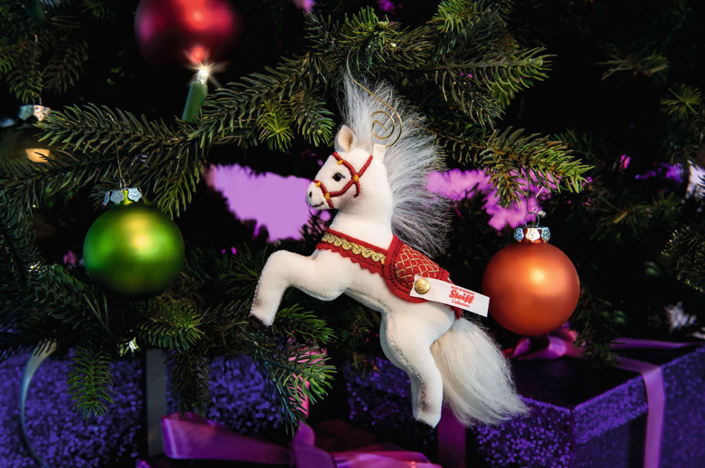 Steiff Christmas horse ornament 10 cm velvet white 006920