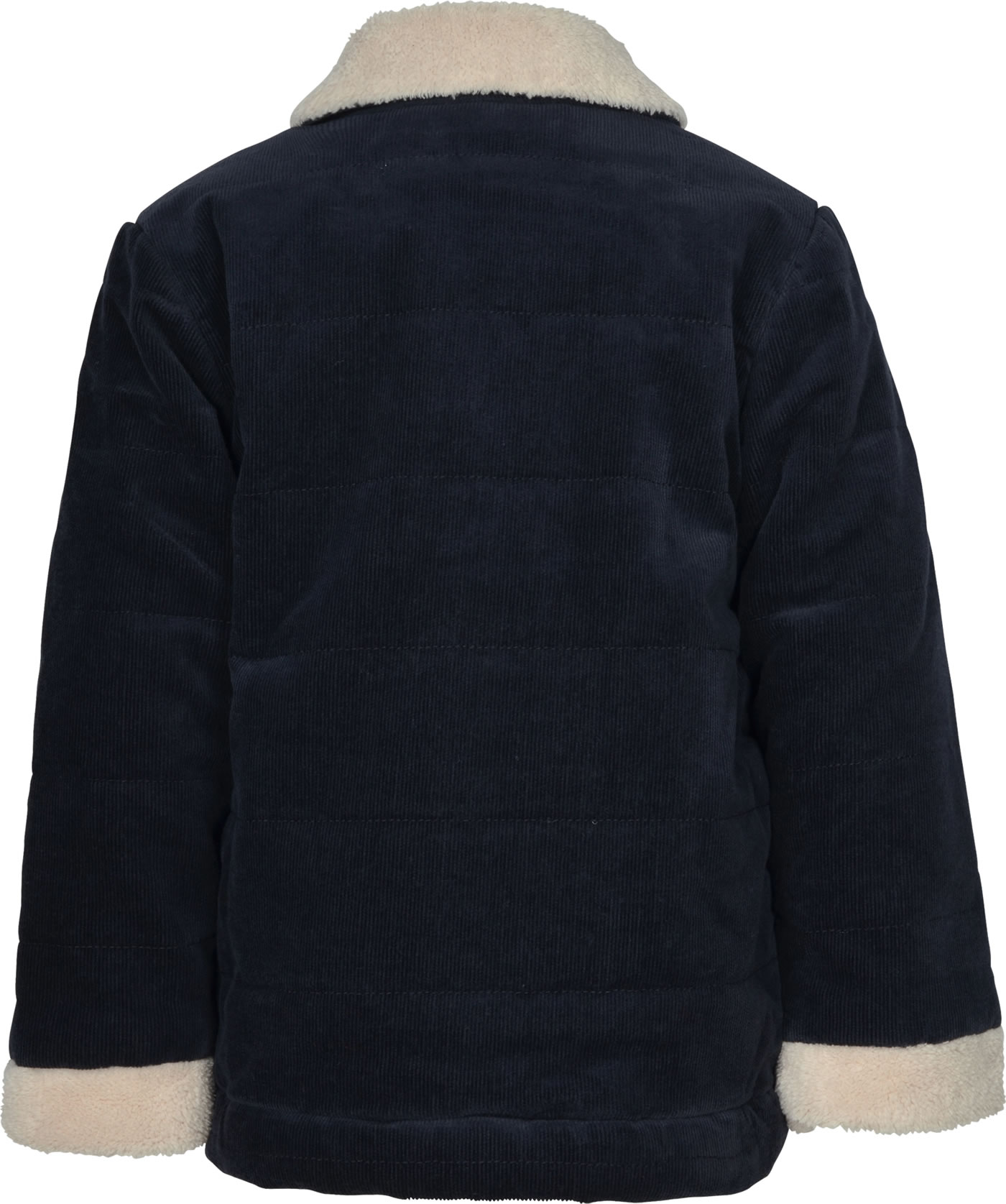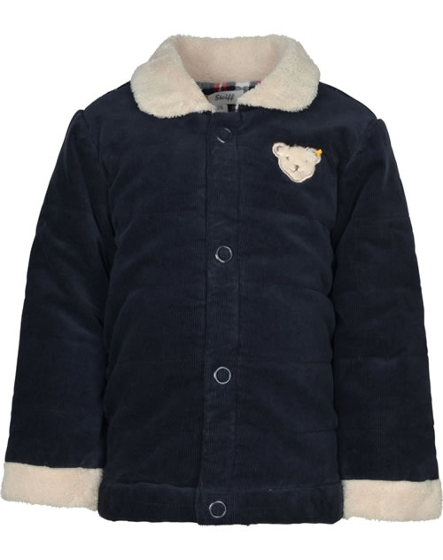 Lined fine cord jacket by STEIFF from the Paper Plane collection for boys. The jacket has a warm checked lining and keeps you warm, especially on cooler days. The STEIFF bear is on the chest. Another nice detail is the teddy plush collar and the soft cuffs. The jacket is closed with snaps.