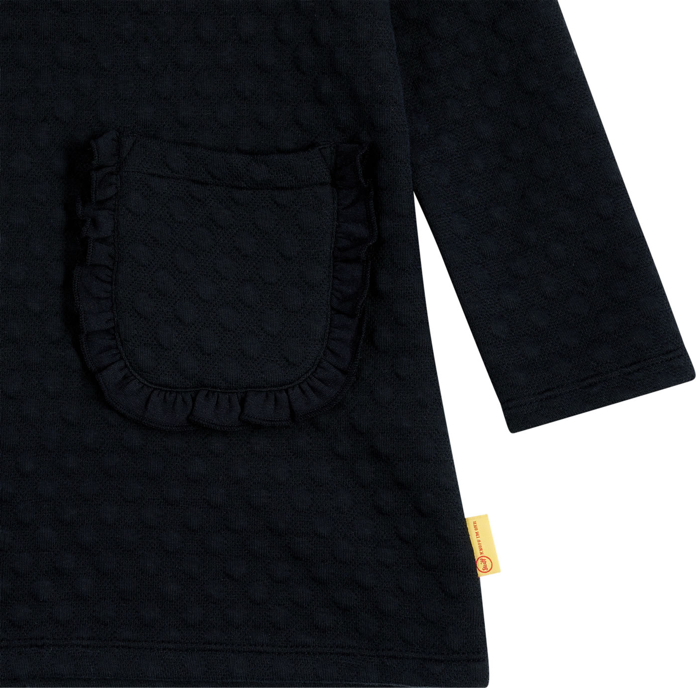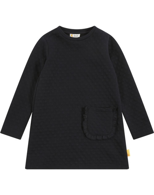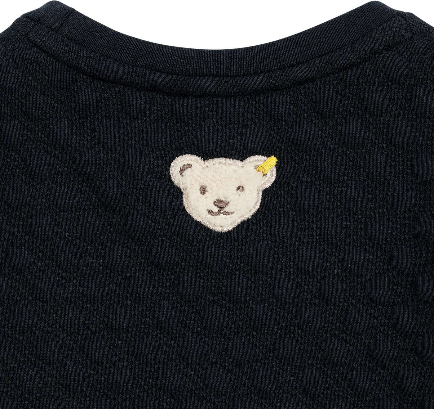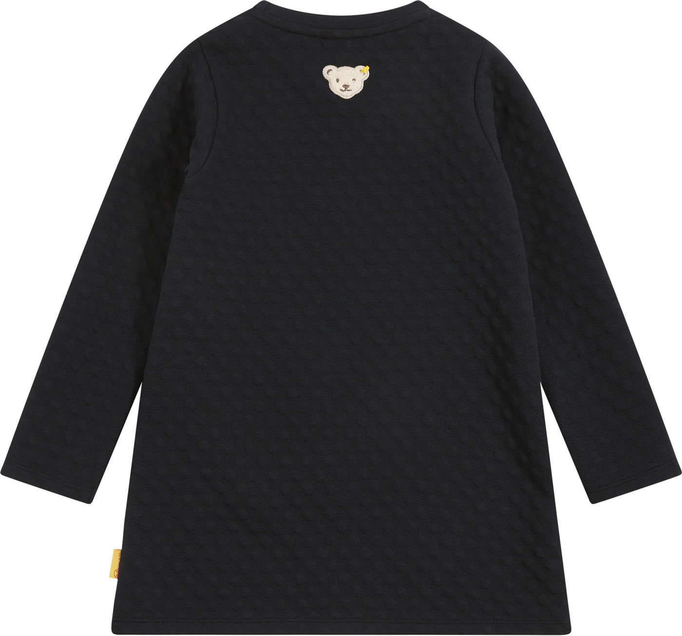 Pretty dress with long sleeves by STEIFF from the DALMATIAN collection. With the jacquard sweat dress in a dot look, activities are fun even on cooler days. A pretty detail is a patch pocket with ruffles on the front. The special sweat is cuddly soft and doesn't crease when playing or chilling. Slightly flared at the end, the dress gives adventurous girls freedom of movement for happy romping. The fluffy Steiff teddy bear is a must and is on the back.