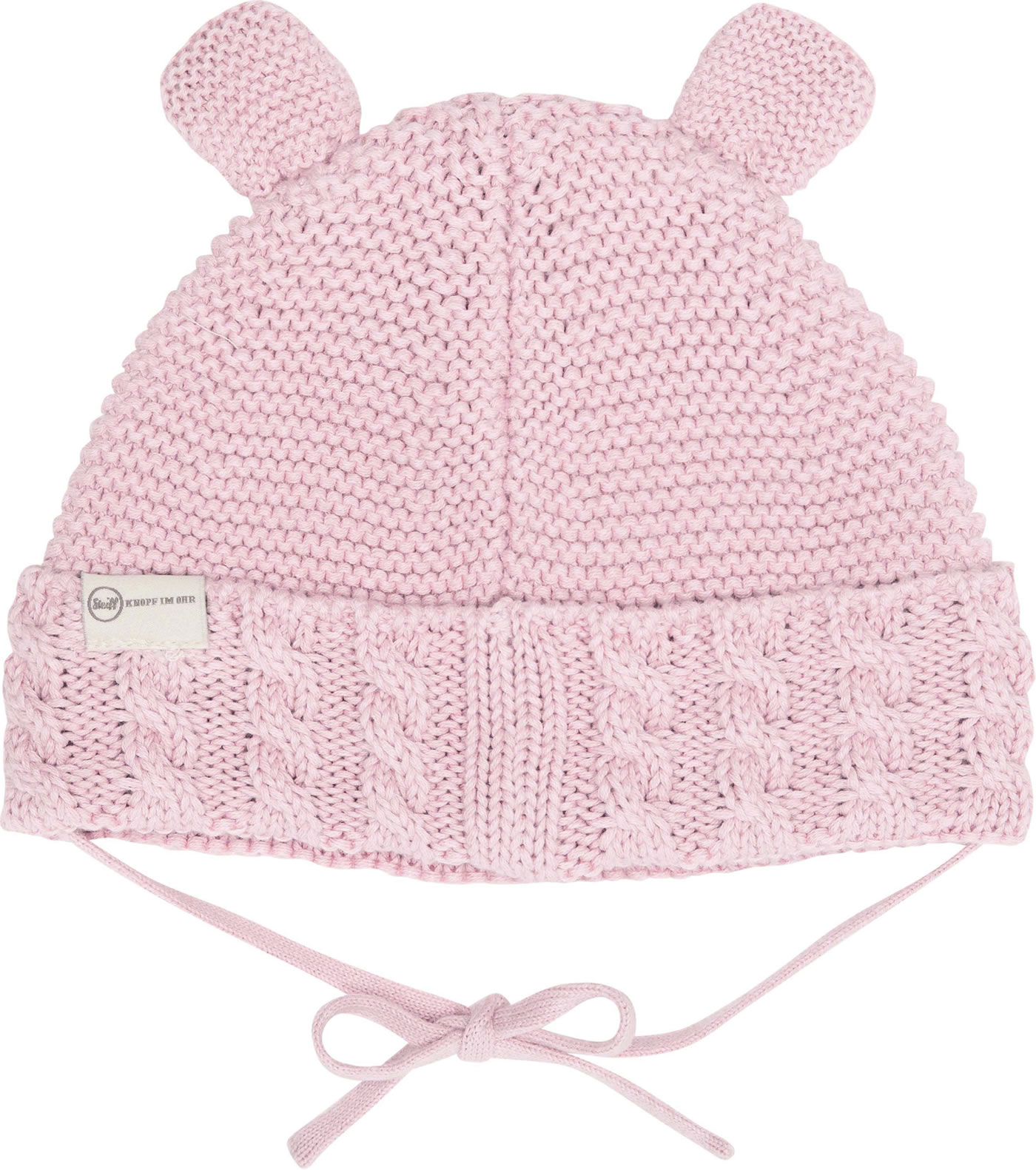 Pretty knitted hat by STEIFF from the Baby Wellness collection. The hat is purl knit and has a cable pattern. The little STEIFF bear on the front and the cute bear ears are particularly eye-catching.