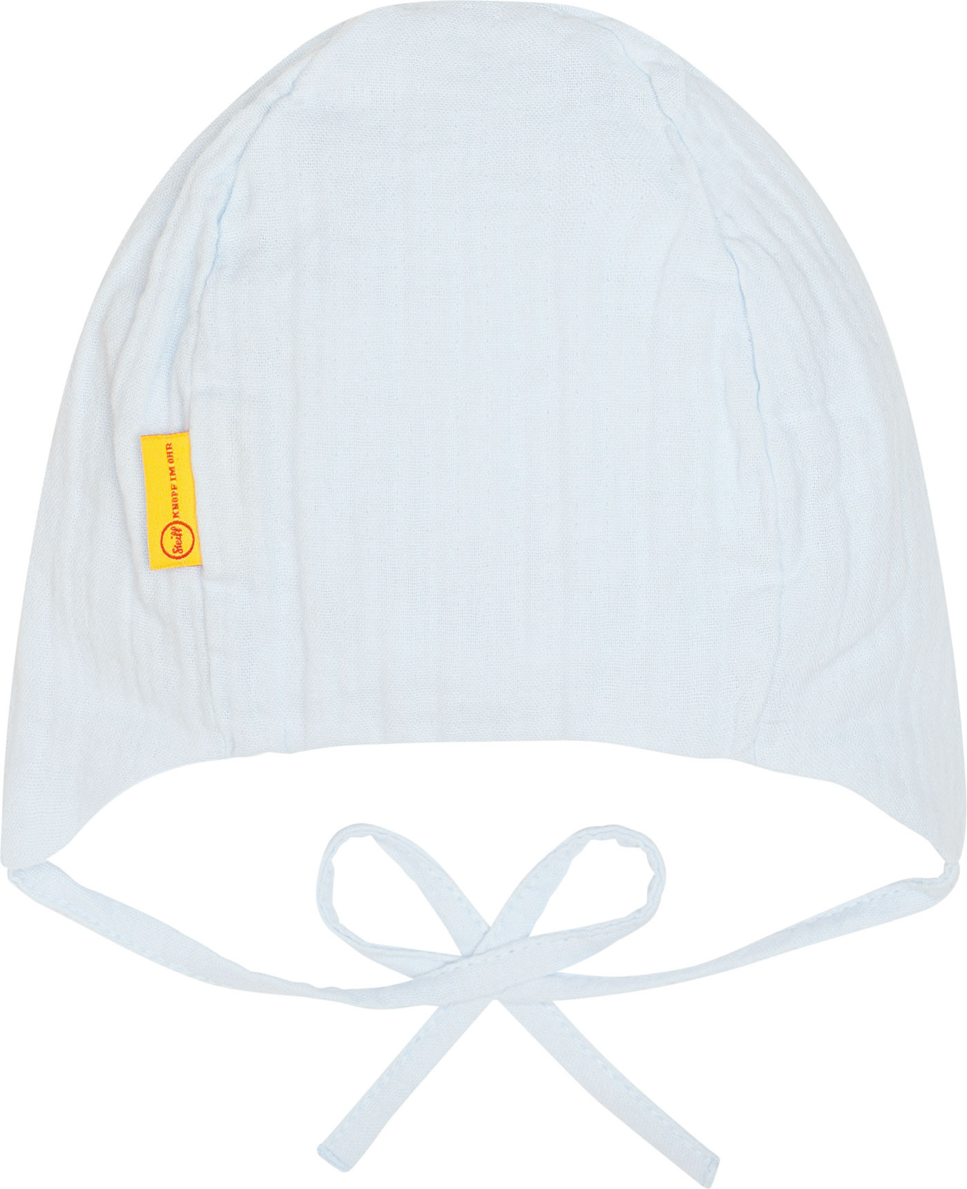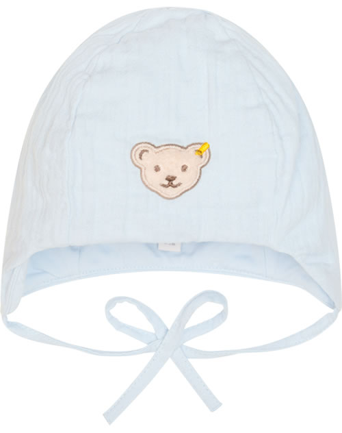 Double-layer hat by STEIFF from the Lazy Nils collection for boys. The small STEIFF bear adorns the front. The outer fabric is made of seersucker material and the lining is made of soft jersey.