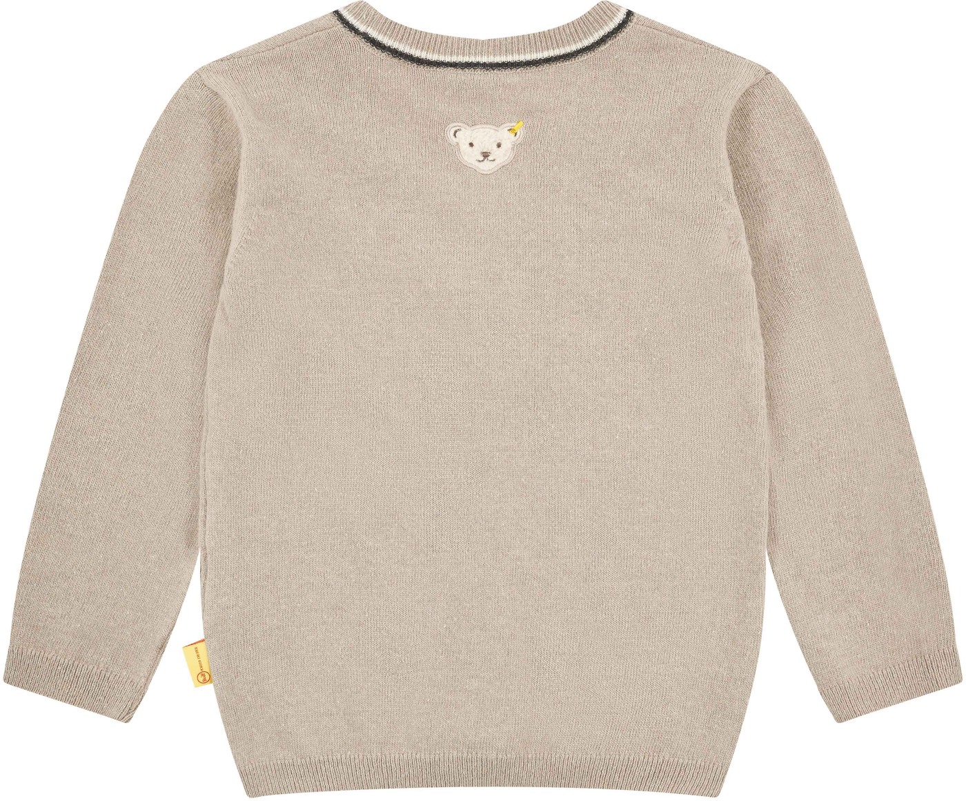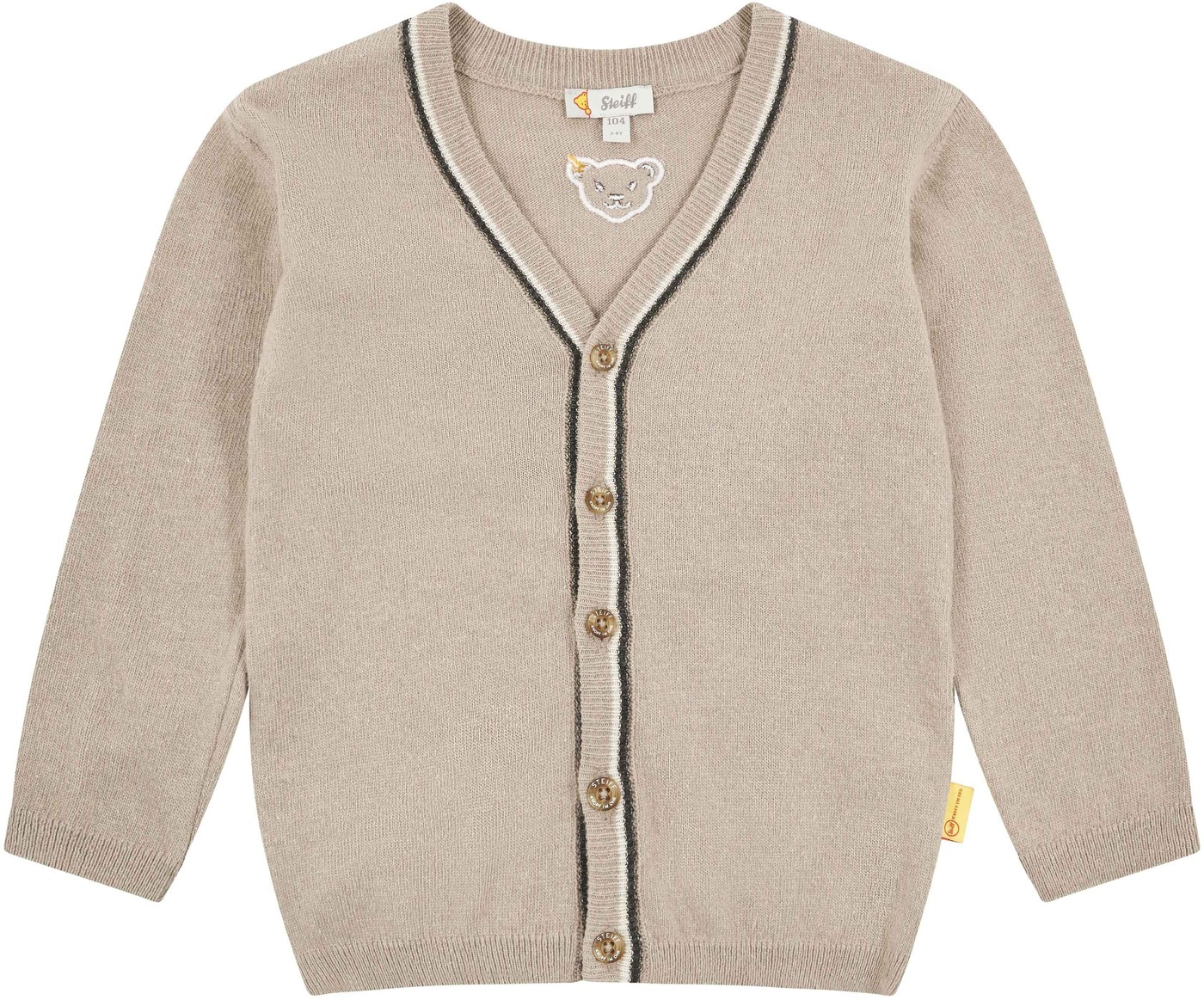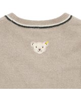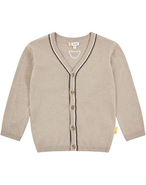 No wardrobe is complete without this classic cardigan. The design is both classic and elegant. Elasticated trims allow for greater freedom of movement. The Steiff Teddy bear motif will keep your child company through thick and thin. This cardigan comes in an earth tone and has a V-neckline. Max. 30° C special gentle wash, Do not bleach, Do not tumble dry, Iron at low temperature, Professional dry cleaning with perchloroethylene and/or hydrocarbons
