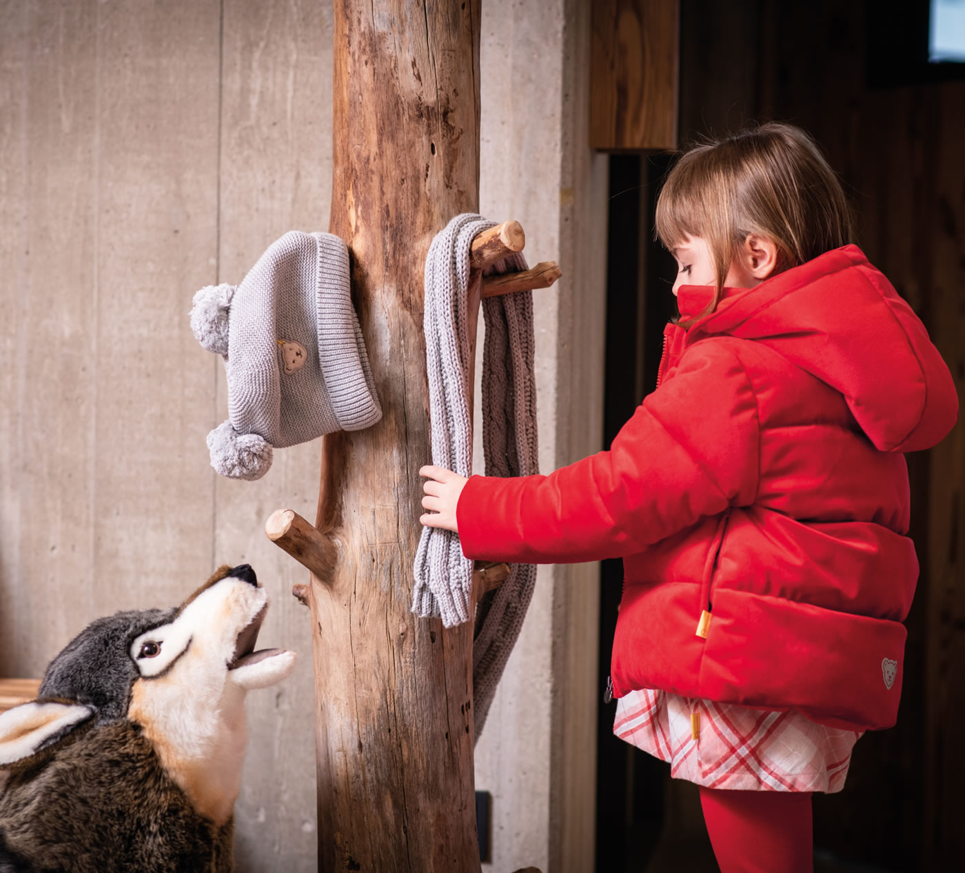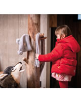Knitted hat with pompoms by STEIFF from the Classic collection for girls. The little STEIFF bear adorns the front of the hat. The purl-knit hat is lined with warm fleece in the ear area.