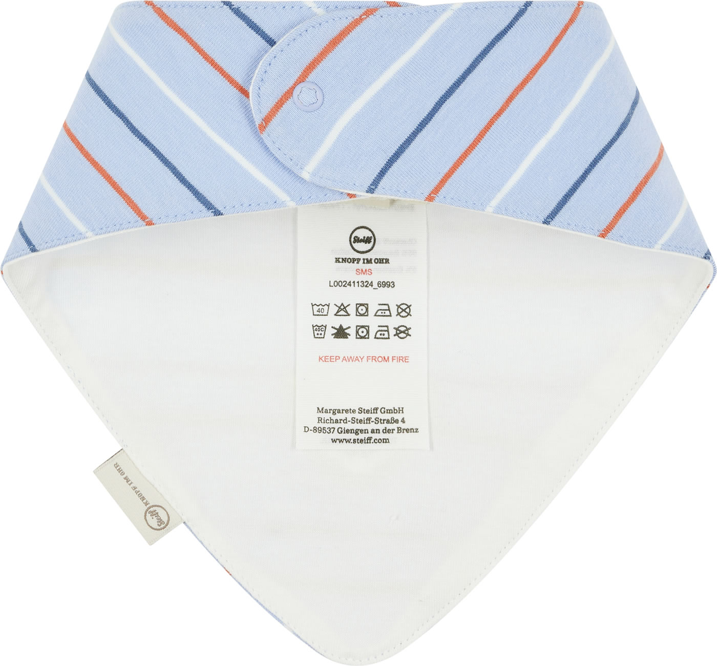 Double-layered scarf made of jersey material from STEIFF from the Catcher collection. The little STEIFF bear adorns the striped side. The scarf is closed with a press button, which can also be used to adjust the width.