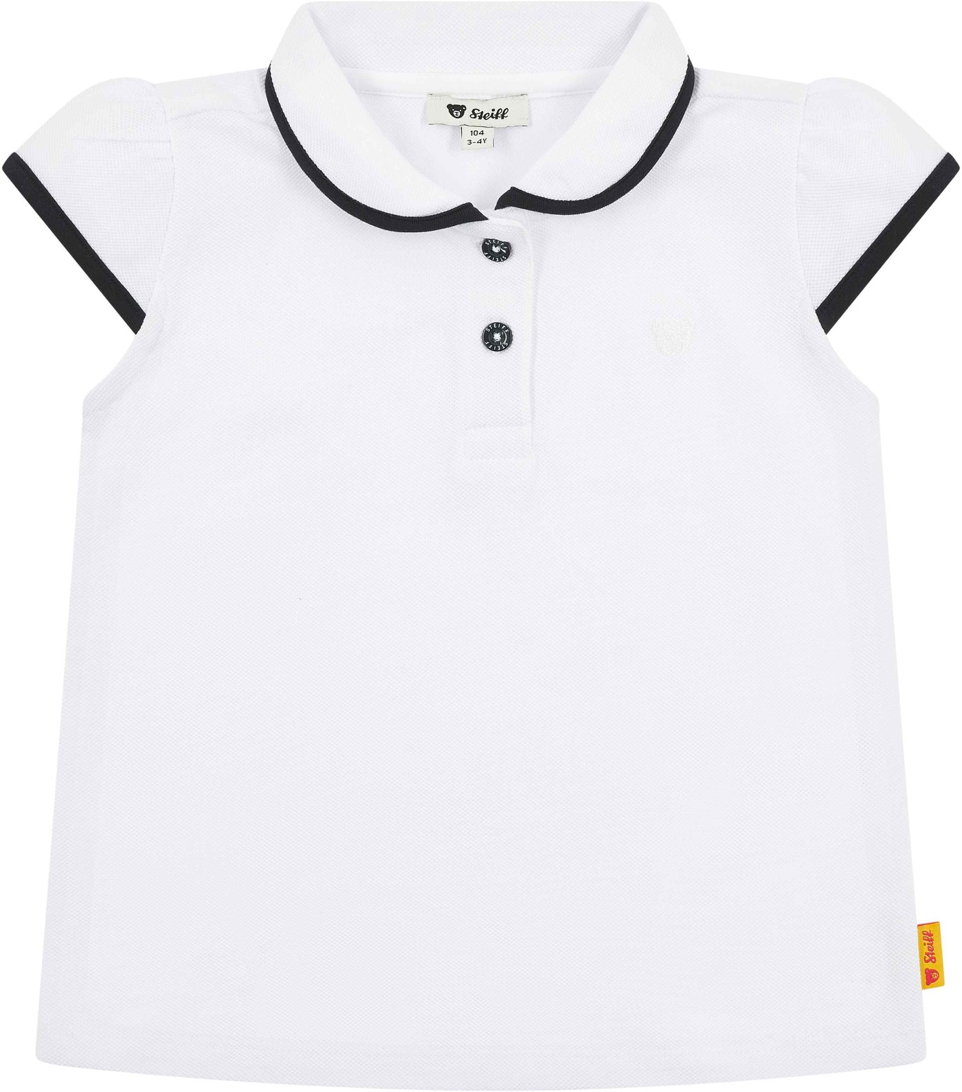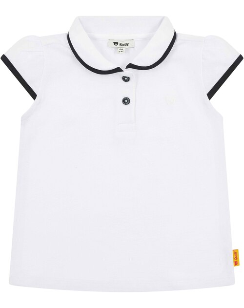 This adorable A-line polo shirt is perfect for little style icons who love a touch of effortless charm. Made from soft piqué fabric, it feels wonderfully light and comfortable on warm days. Delicate cap sleeves and dark blue trim at the collar and cuffs add a stylish flair. The lovingly embroidered Steiff Teddy bear motif completes the look, making this polo shirt a treasured favourite - ideal for any occasion filled with play and joy!