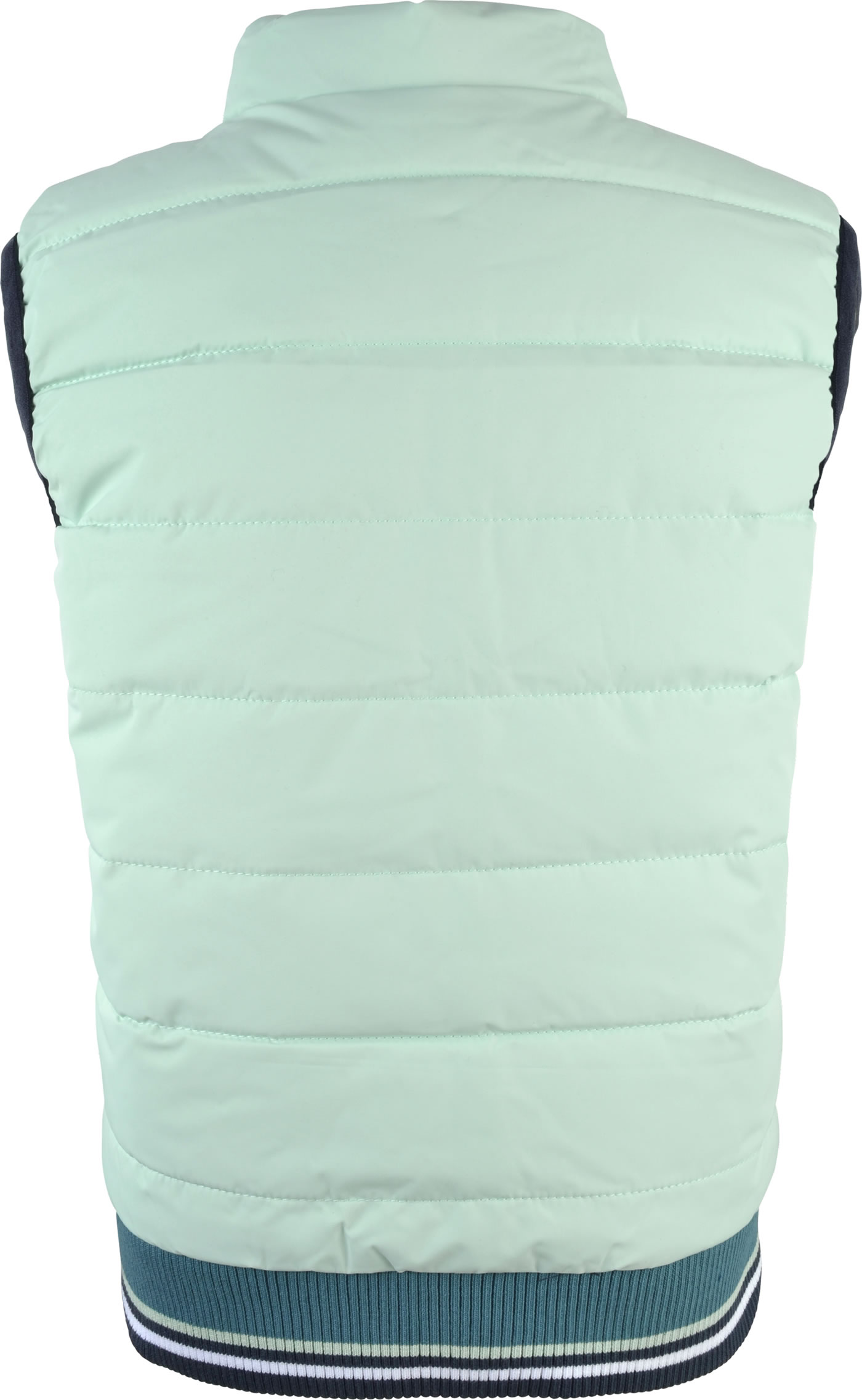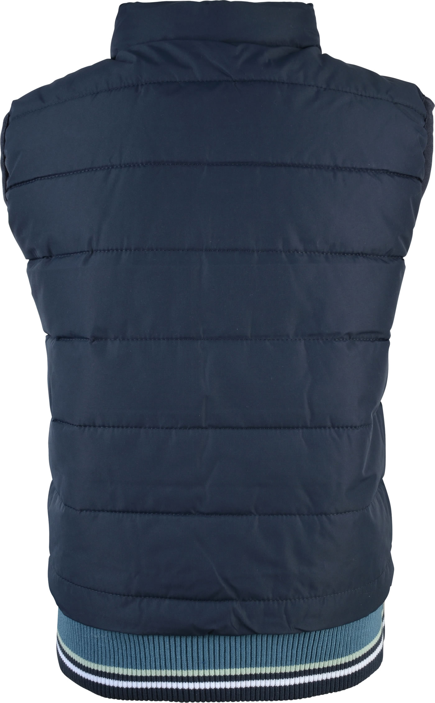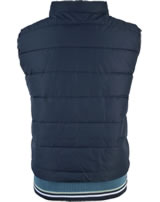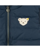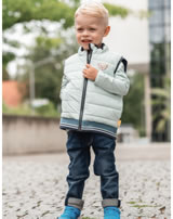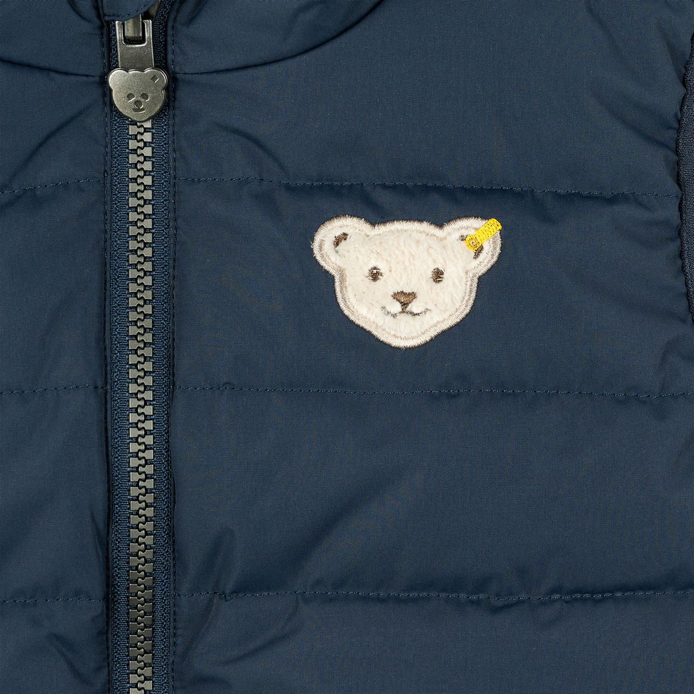 Reversible vest for boys from the Aligator Island collection by STEIFF. The vest is padded and therefore keeps you nice and warm. Thanks to ecological BIONIC-FINISH®ECO impregnation without plasticizers, the outer material is wind- and water-repellent as well as breathable. A zipper with chin guard prevents possible entrapment and the stand-up collar protects the neck area. Small treasures find a safe place in the pockets. Depending on your mood, the dark blue or light green side can be worn outwards. The small STEIFF bear is located on the left side of the chest and striped cuffs at the end provide another eye-catcher.