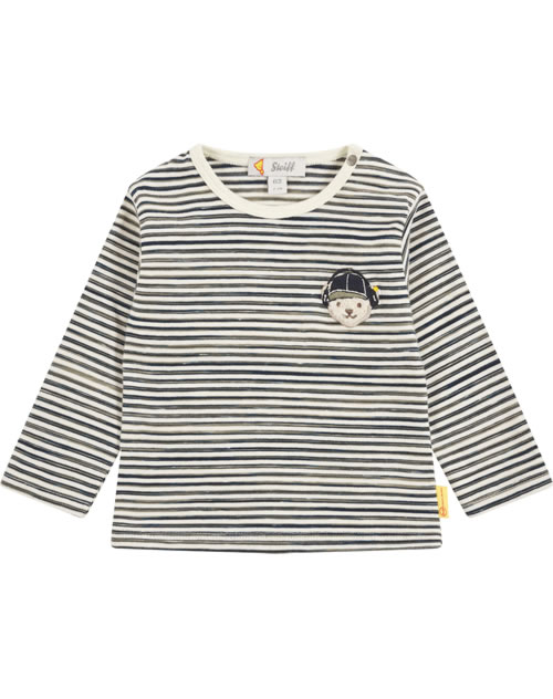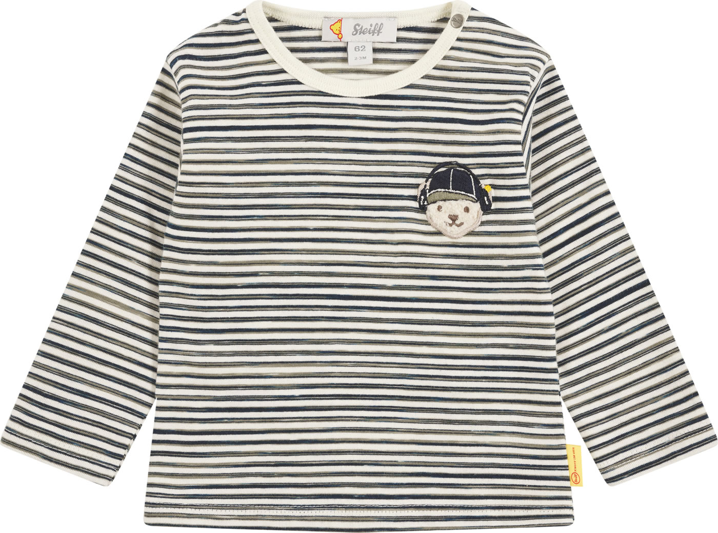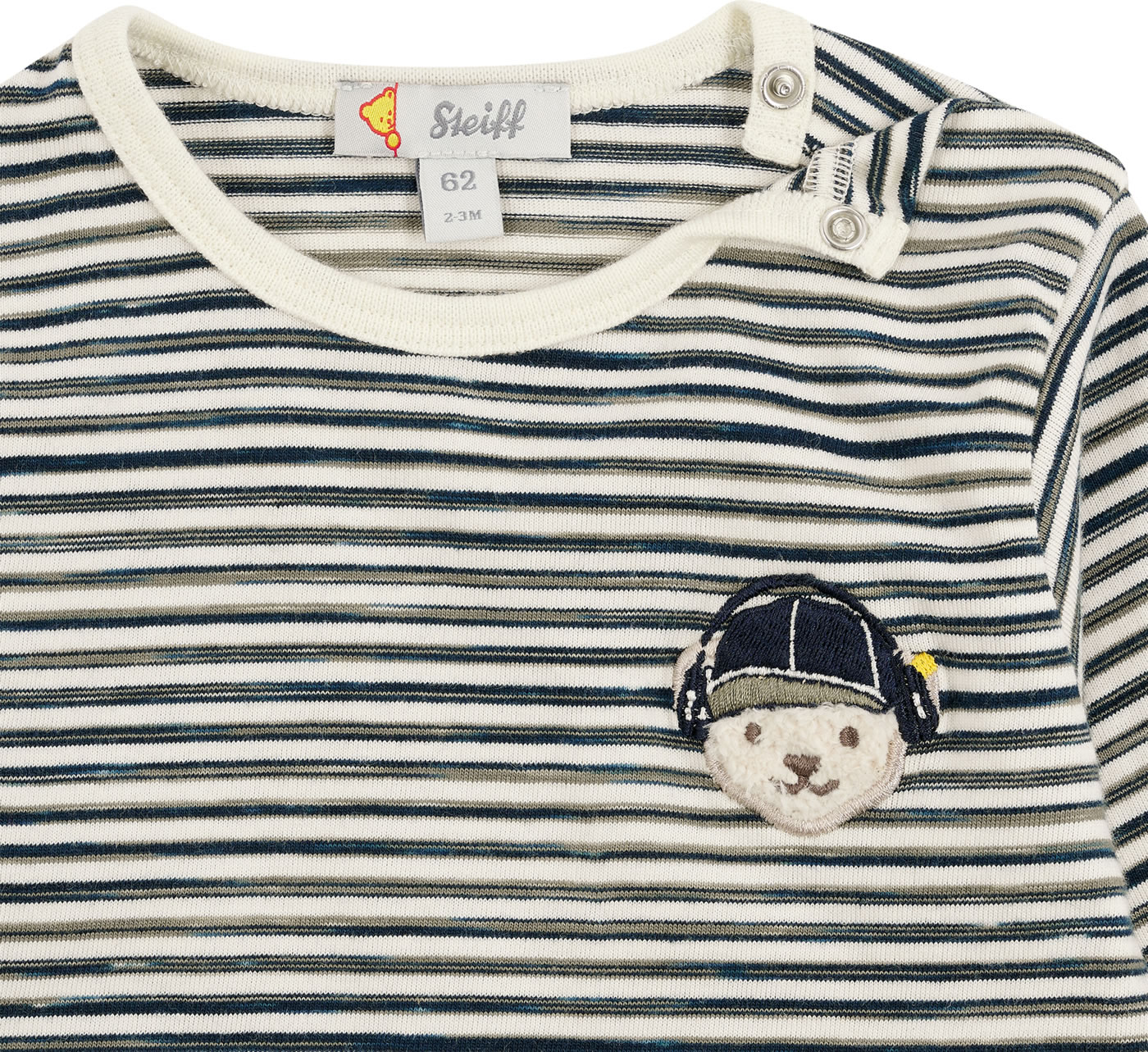 Long-sleeved shirt for boys from the STEIFF college collection. This long-sleeved shirt will delight cool boys with a lovingly appliquéd Steiff teddy bear on the chest. Cozy, soft jersey is wonderful to wear. The buttoned neckline makes it easy to slip on and feel good. The loose fit gives active boys freedom of movement when playing. The striped design adds a sporty touch.