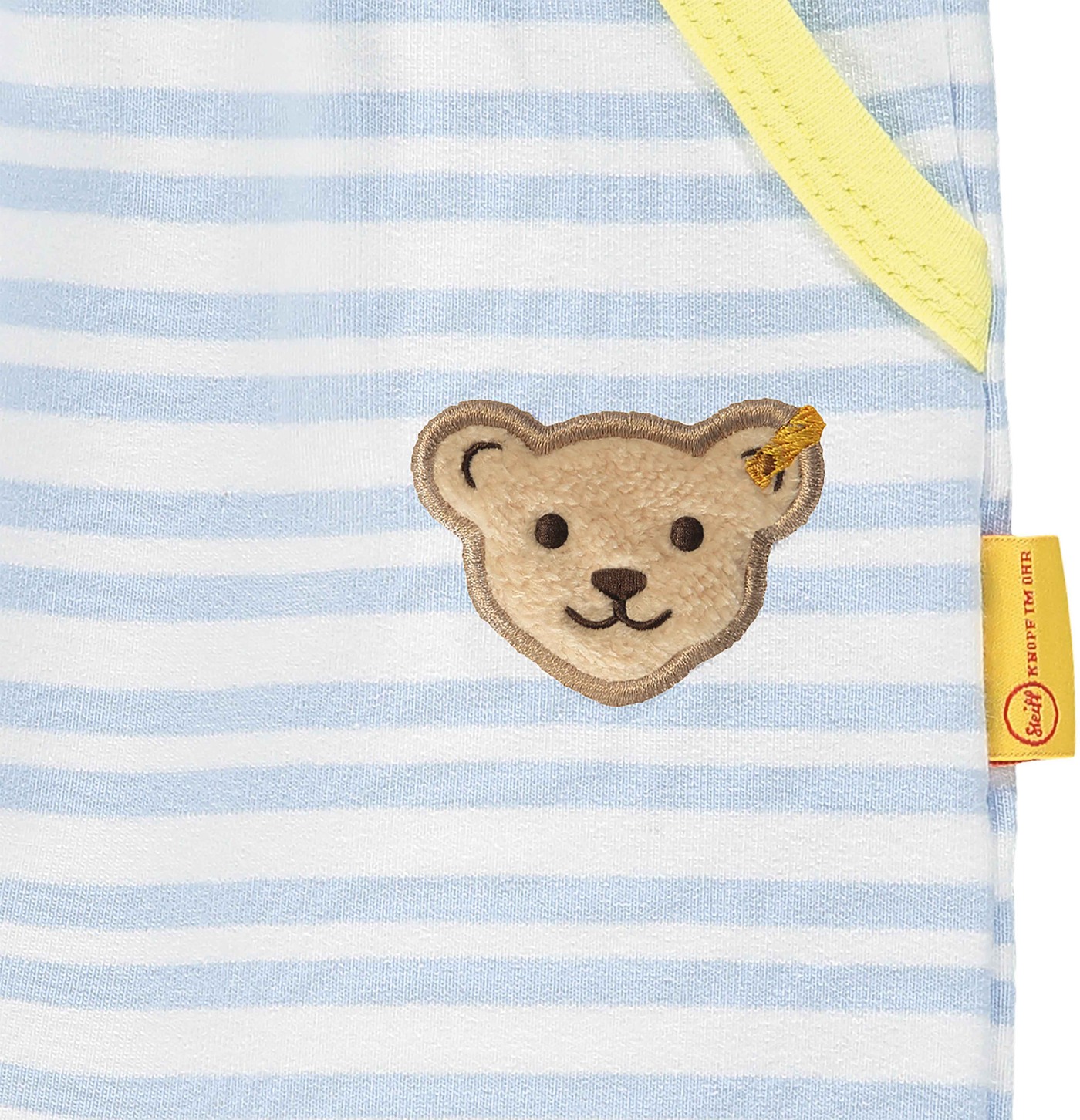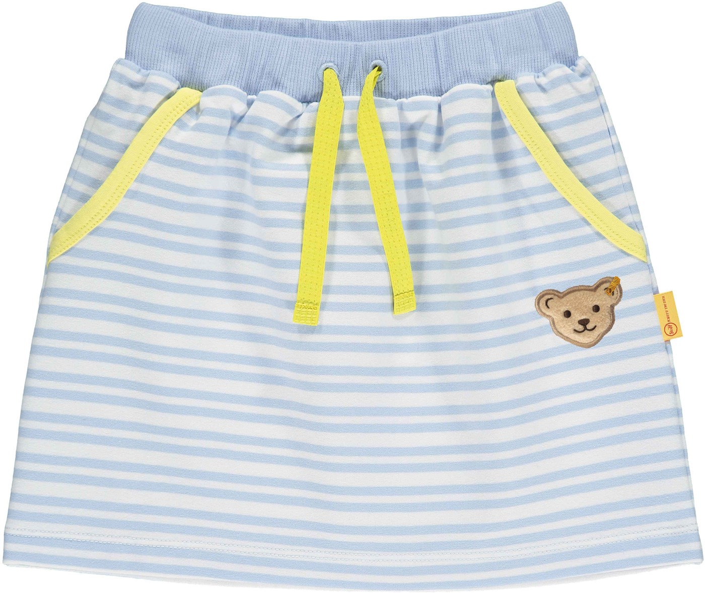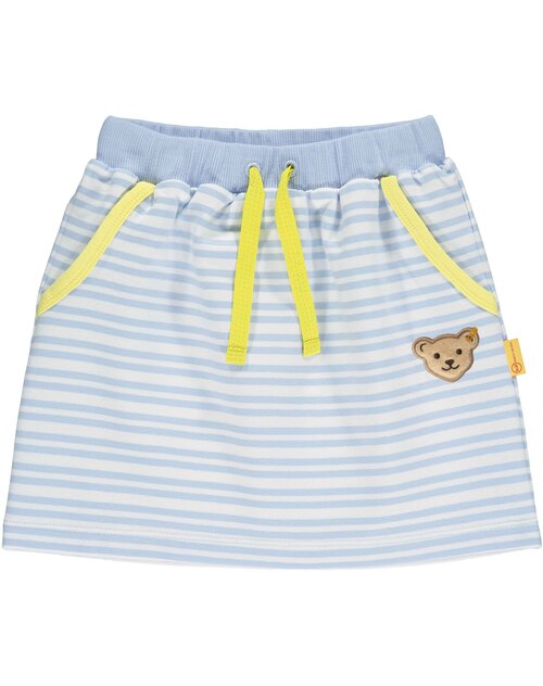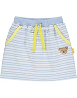 Striped Skirt made of sweat fabric by STEIFF for girls from the Hello Summer collection. The loose cut offers a lot of freedom of movement. The elastic cuff with drawstring ensures a perfect fit. The yellow piping and the STEIFF bear on the front are beautiful details.